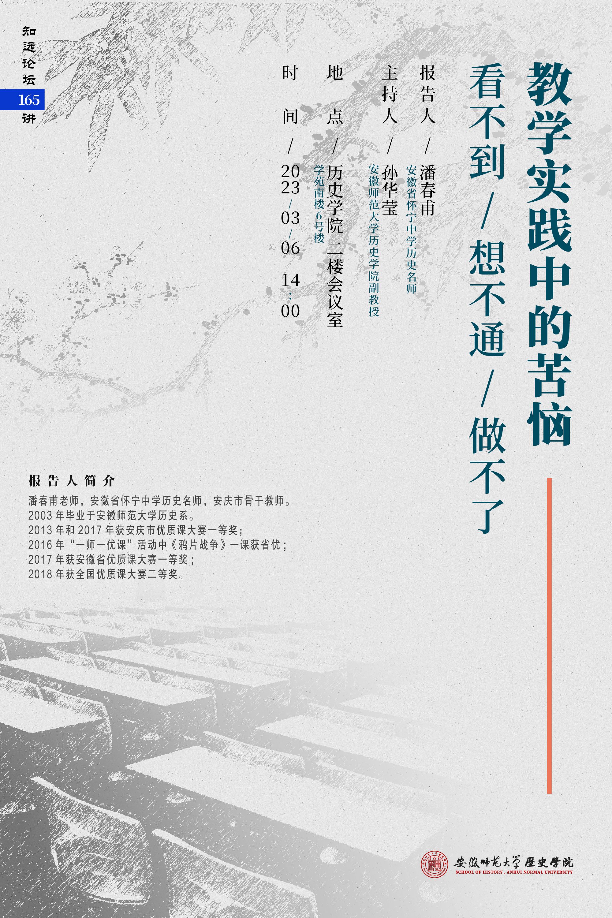 【学术预告】教学实践中的苦恼:看不到——想不通——做不了(安徽省怀宁中学 潘春甫)