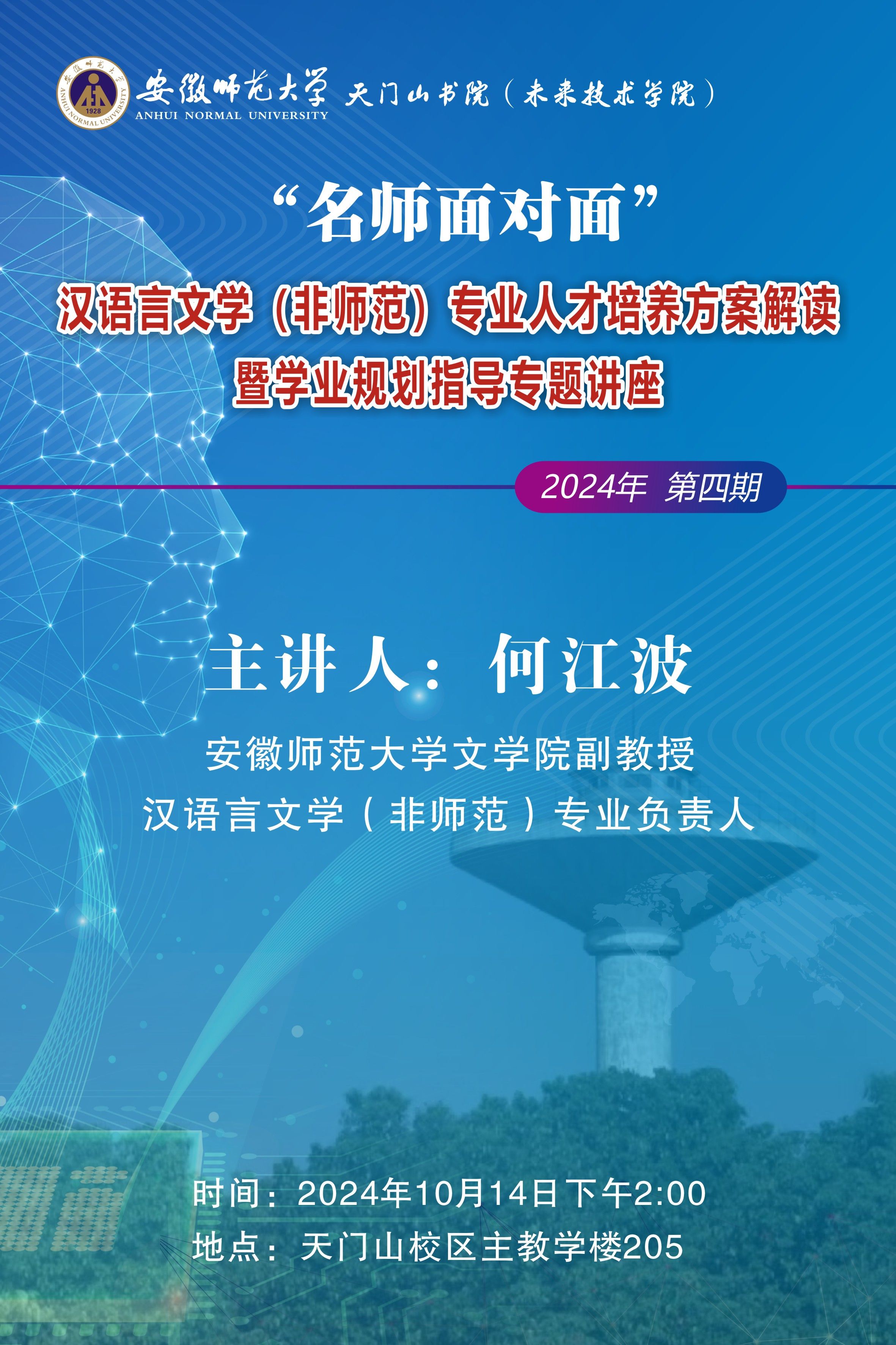 “名师面对面”:汉语言文学(非师范)专业人才培养方案解读暨学业规划指导专题讲座海报