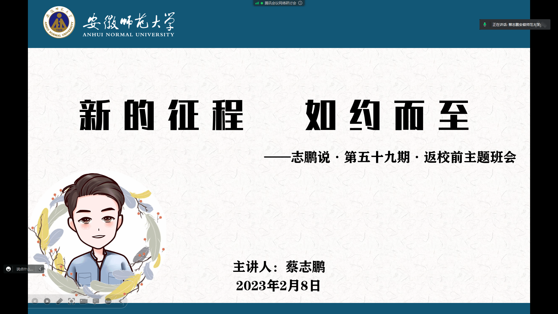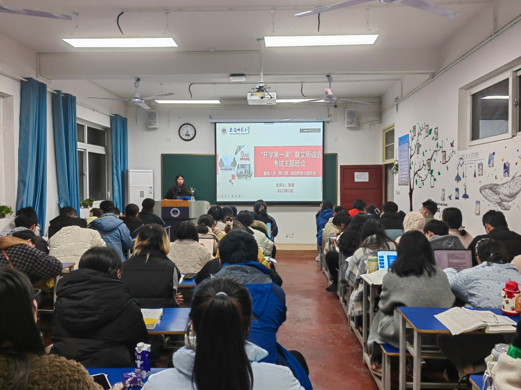 一堂健康管理课。各班级召开主题班会重点向同学们宣讲新冠病毒感染实施“乙类乙管”后学校的管理措施,引导同学们强化责任意识,做“自身健康管理的第一责任人”。班会上,辅导员要求同学们继续坚持落实“今日校园”每日健康打卡、“晨午晚检”、缺课缺勤及离芜请假审批等相关制度。