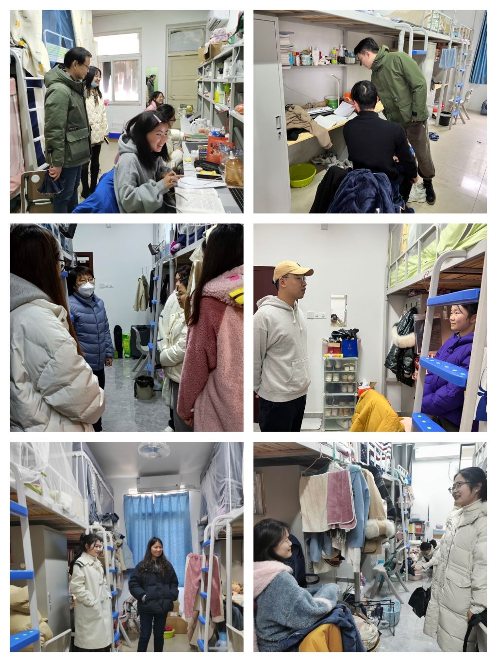 一堂文明修身课。2月12日,学院党委副书记张玉新带领辅导员分别走访赭山校区6栋、10栋、13栋等学生宿舍。张玉新要求同学们要积极整理内务、加强劳动自律、养成良好卫生习惯,营造整洁、卫生、健康的生活环境。走访过程中,张玉新还来到少数民族同学的宿舍中,了解了他们假期学习生活情况和返校情况。
