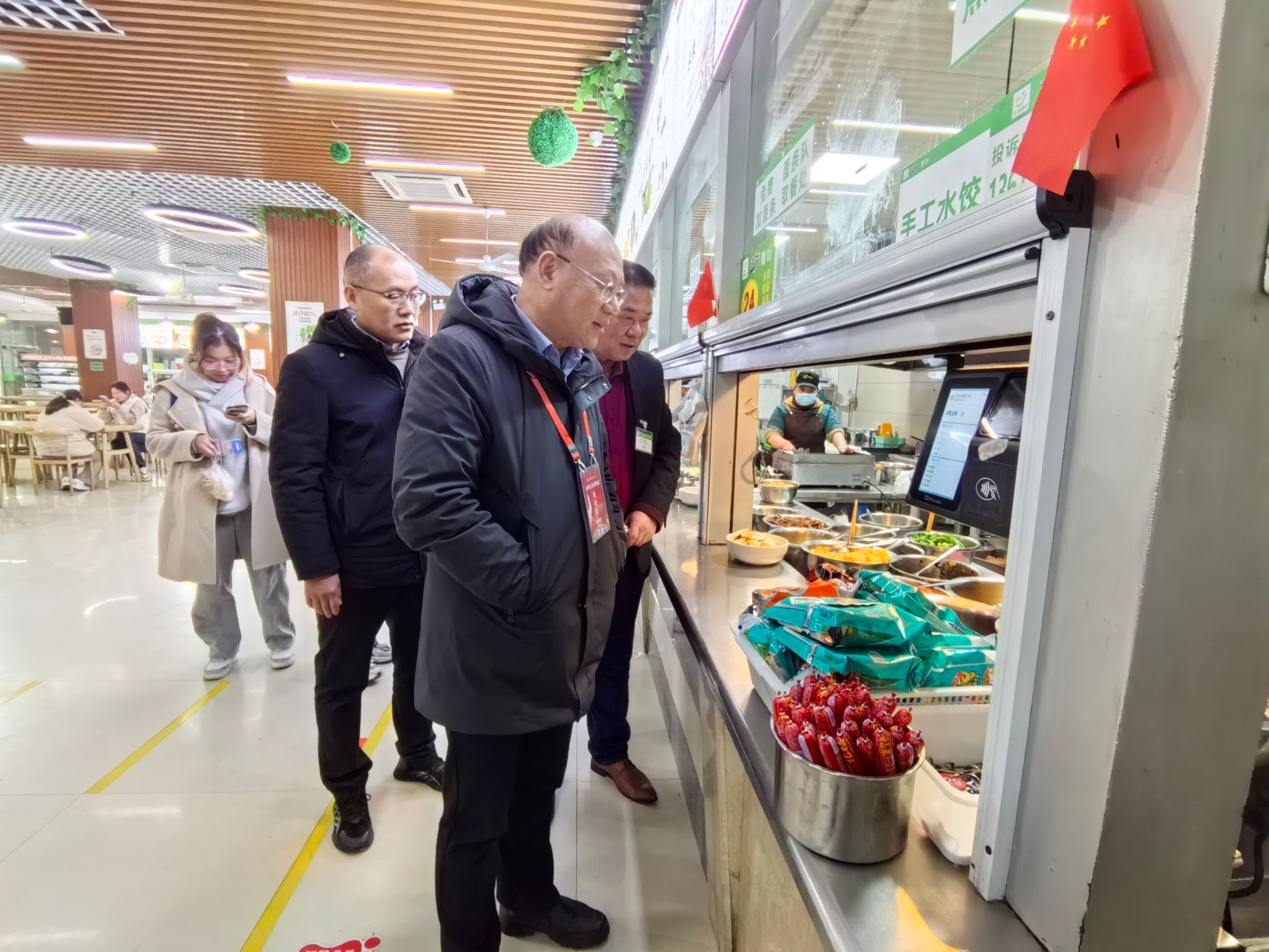 来到图书馆,周新发详细调研各场所环境,逐一查看阅览室图书报刊、学生借阅等情况,与前来图书馆自习的同学亲切交流学习、饮食、住宿等情况,现场测试图书借阅设备使用便捷度、借阅有效度等,对每日均开通与赭山校区和花津校区的图书通借通还表示赞许。他十分关心师生健康,与食堂负责人交流时,仔细询问物资采购供应、食品制作、质量保障、服务及价格等情况,强调要始终将食品安全摆在首位,把好原材料进货关,做好就餐场所环境、设施设备消毒、餐用具消毒等关键环节的质量监控工作,进一步增强供给能力,坚决守好食品安全底线。