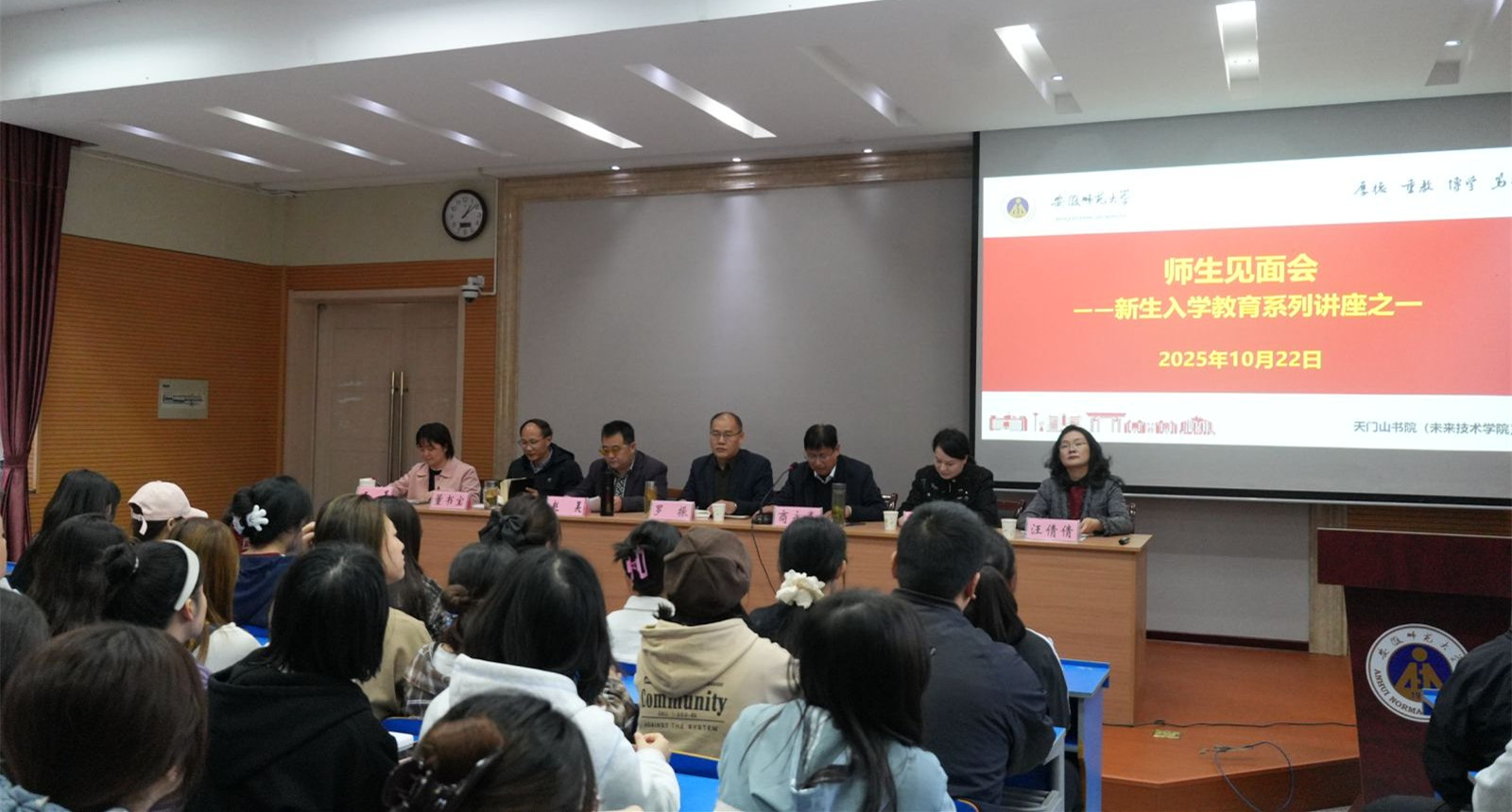 为切实加强新生入学教育,帮助新生尽快适应大学生活,9月下旬以来,天门山书院分专业召开7场2025级新生师生见面会。各培养学院领导、专业负责人、书院领导班子、辅导员及全体新生参加见面会。