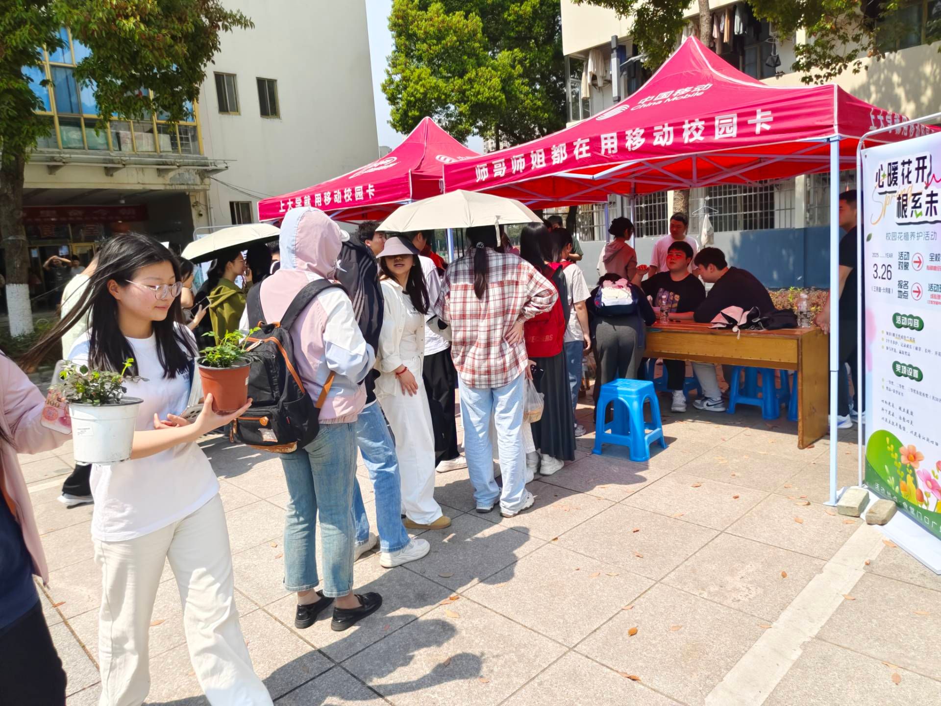 为进一步落实大学生护航计划,推进“一站式”学生社区建设,充分发挥社区“思政小院”作用,2025年3月26日,天门山书院心理驿站在食堂广场举办“心暖花开,根系未来”主题花植养护活动。通过劳动实践引导学生在春日里感受生命成长的喜悦,培育积极向上的健康心态。活动吸引了近100名学子参与。