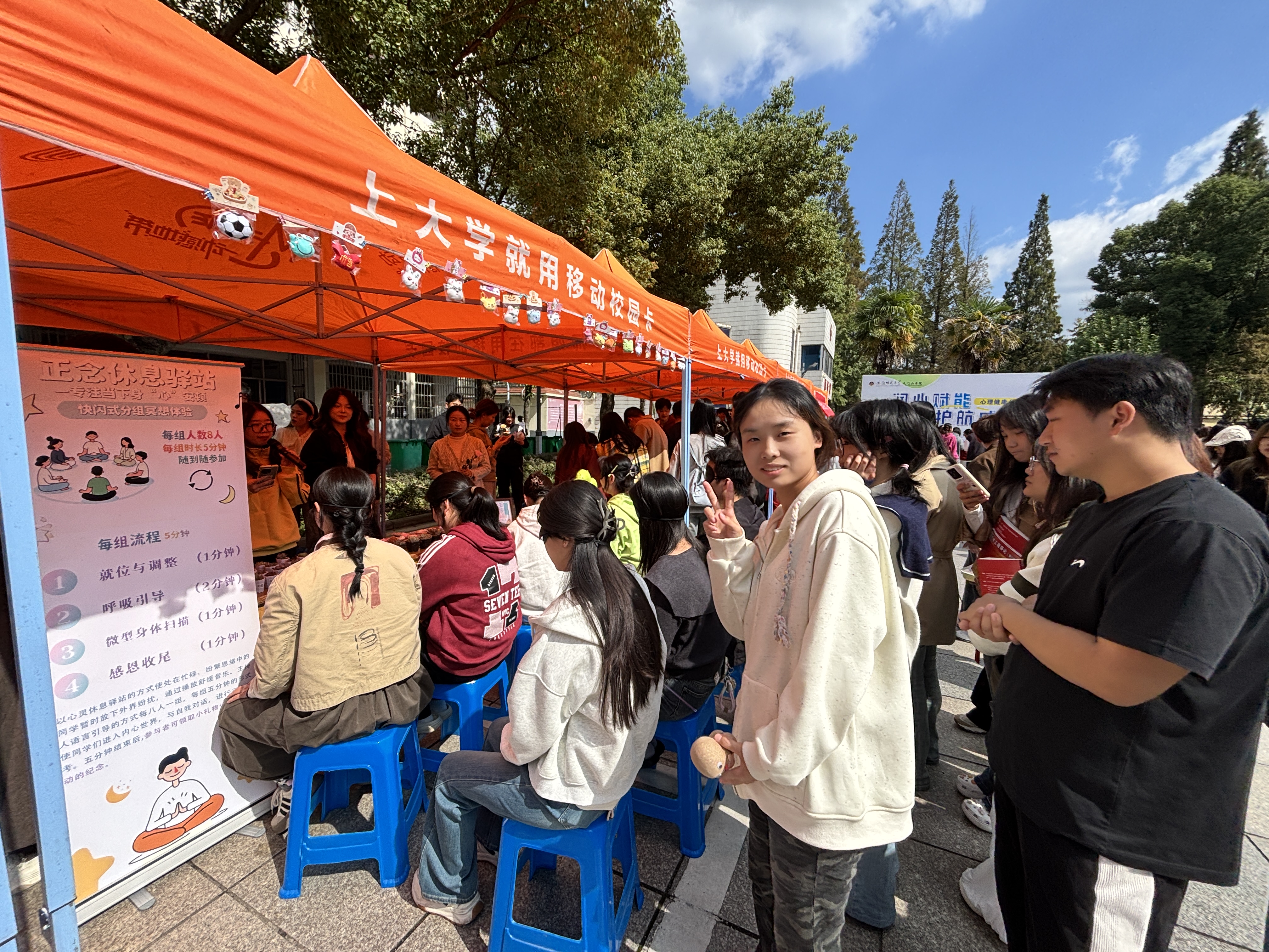 10月22日中午12时,天门山书院“润心赋能、护航成长”心理健康月活动在食堂门口广场正式启动。本次活动由心理驿站主办,各专业辅导员协同参与,设有1个主会场与12个“心”主题分会场,吸引了众多学子踊跃参与,现场气氛热烈、温情洋溢。