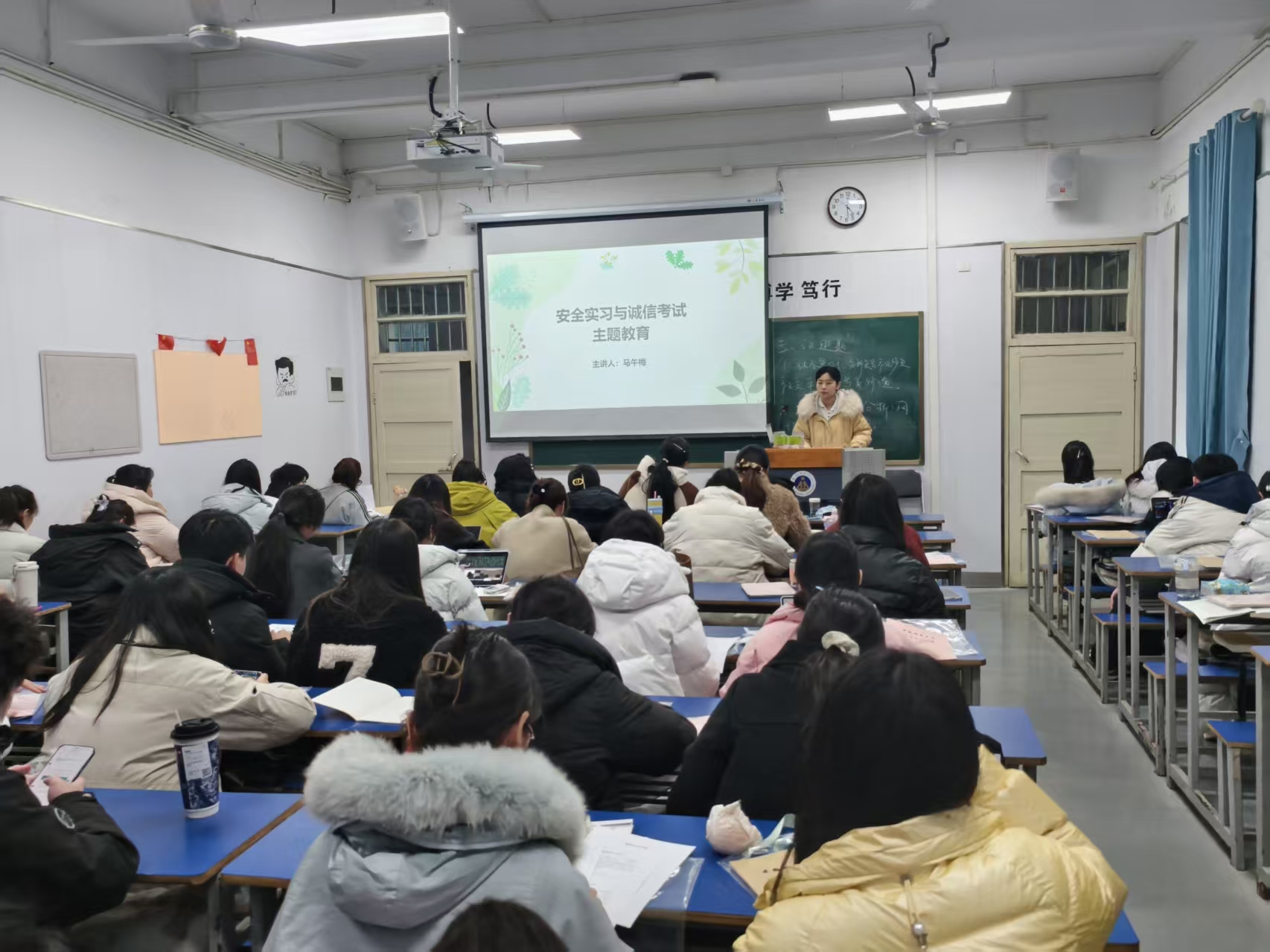 为强化学生安全意识,筑牢诚信考试观念,12月24日下午,天门山书院于主教楼205教室组织召开“安全实习与诚信考试”主题教育班会。本次班会由马午梅主讲,面向汉语言、历史专业全体学生,旨在引导学生树立责任意识、规范行为习惯,实现安全实践与诚信学业双线并重。