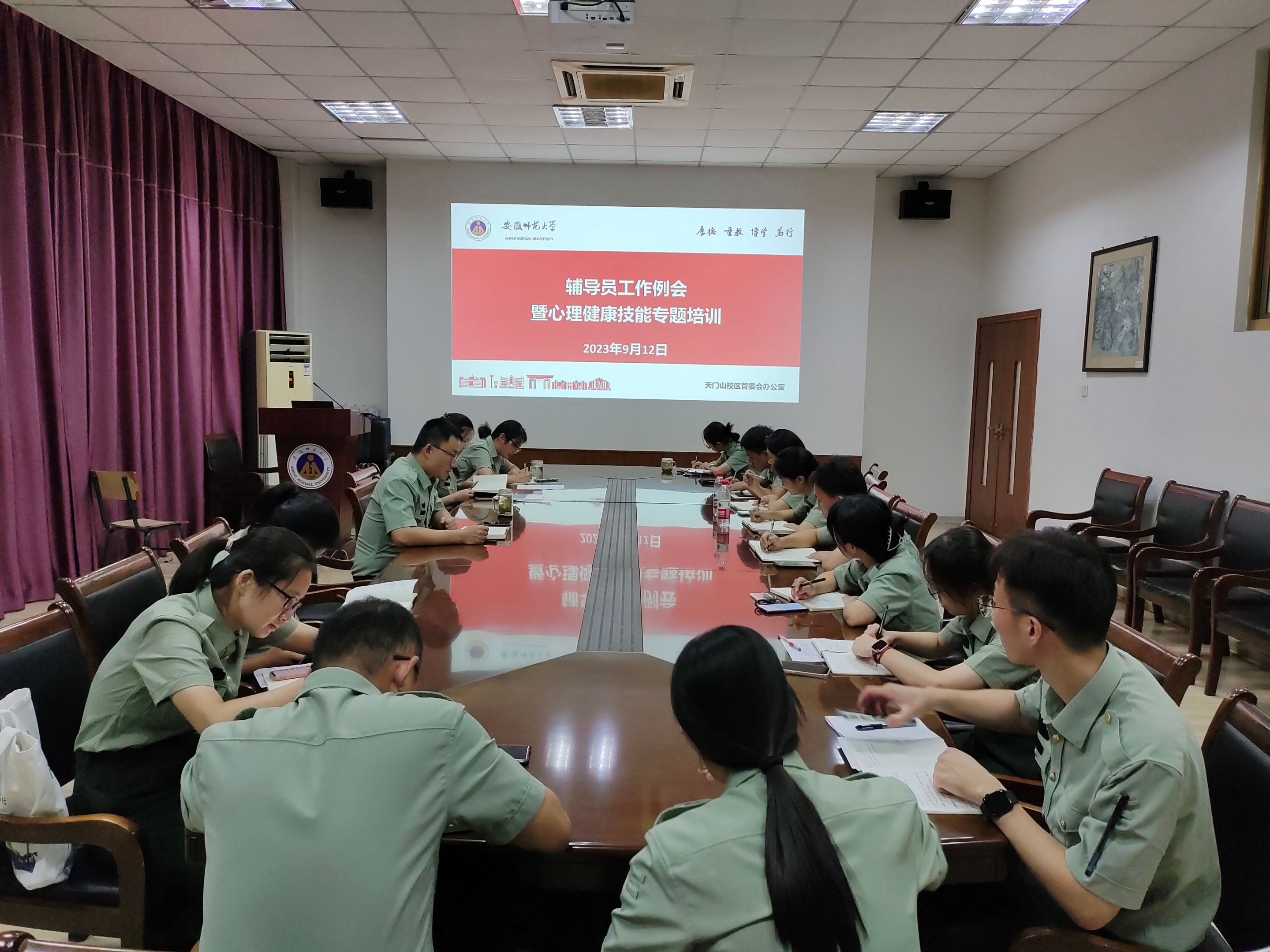 9月12日,天门山校区在第一会议室专题召开辅导员心理健康技能培训会。教育科学学院专职辅导员金凤仙主讲,入驻校区全体专兼职辅导员参加会议。天门山校区管委会学生管理部部长汪暠主持会议。