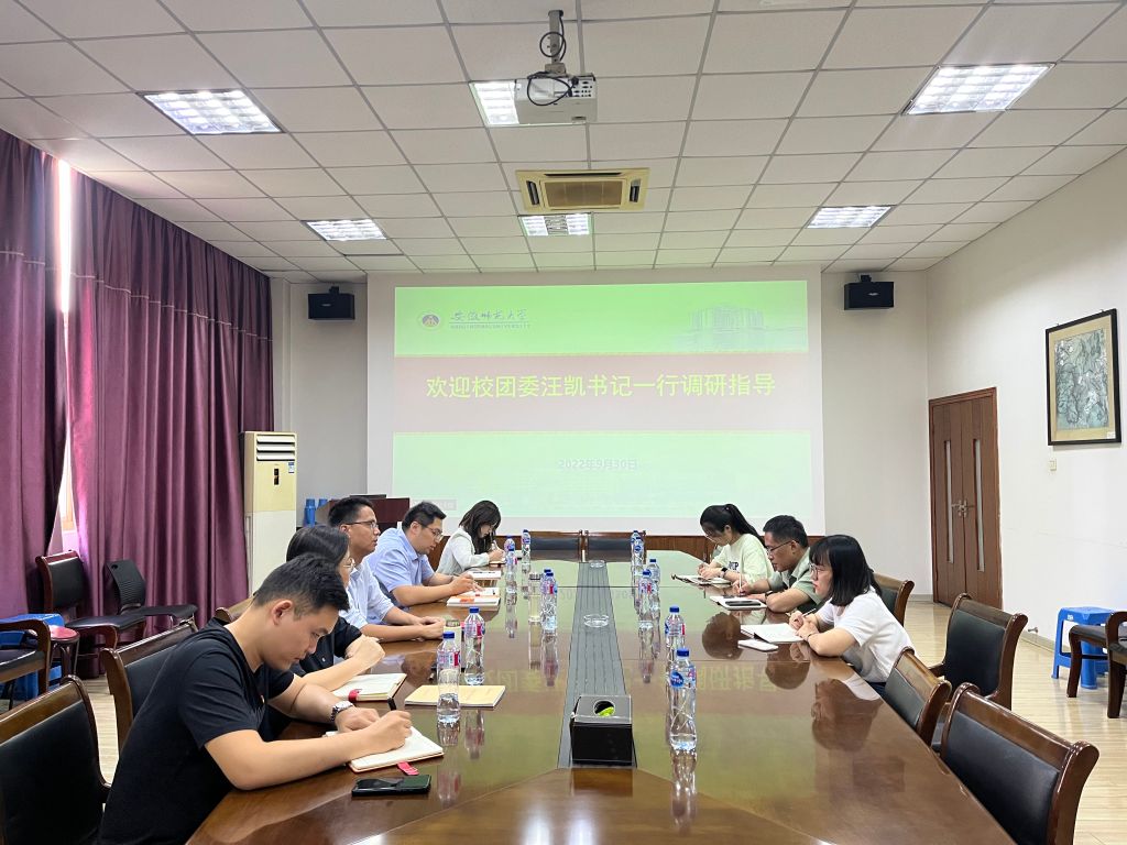 9月30日下午,校团委书记汪凯、副书记廖仲明、副书记张薇薇一行6人来到天门山校区调研指导共青团工作,天门山校区管委会办公室学生管理部部长左方敏陪同参观。