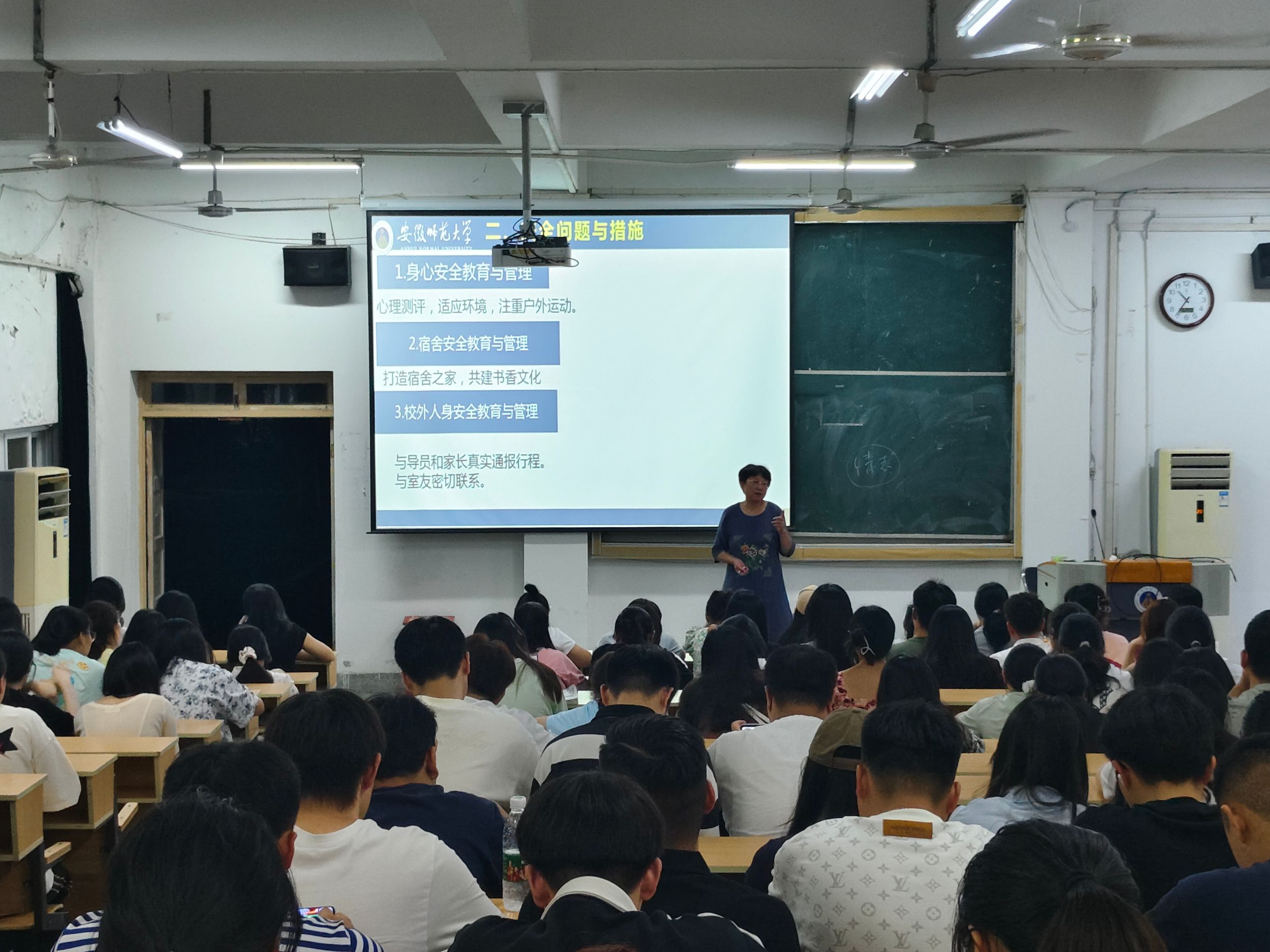 会上,张雪莉结合我校相关的规章制度及真实案例,对即将到来的国庆假期安全问题进行了详实的分析和教育,如宿舍安全、网络安全、防盗防骗防溺水、身心安全和财产安全等方面,并解读了学校有关规章制度。张雪莉详细的分析了当前就业形势,为大家提出了建议,并要求同学们做好学习计划和就业规划,营造良好的班级学习氛围。同时,张雪莉要求大家要注重宿舍文化建设,尽快适应并珍惜大学的宝贵时光。