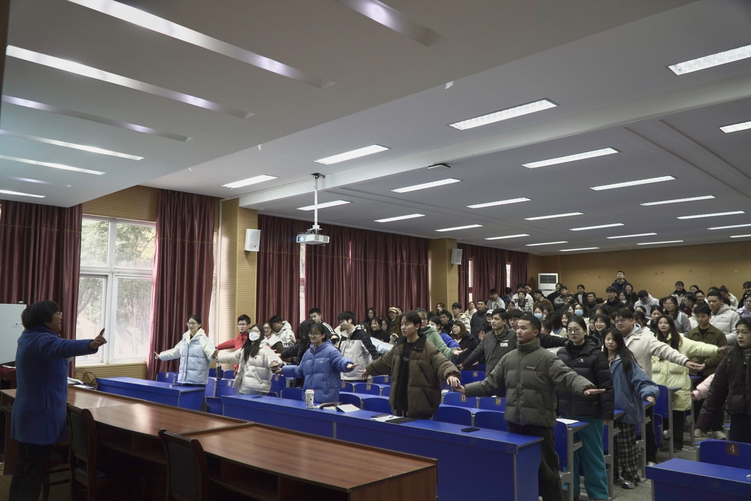 讲座由破冰小游戏——“抓手指”拉开了序幕,现场的气氛瞬间被点燃。讲座从“四种基本情绪”、“情绪的表达形式”、“情绪与健康”、“情绪管理的方法”等几个部分逐一展开。随后,张老师介绍了七种情绪管理的路径,通过“对不起,请原谅,谢谢你,我爱你”四句真言强调了“自省”与“感恩”的疗愈能量;介绍了“恨怨恼怒烦”与“仁义礼智信”是人生“五阴”“五阳”两种不同的生命源头与状态,特别在“如何快速平复不良情绪”方面,张老师为大家带来了一系列实用的方法与技巧。最后全体同学在《大学》和“爱的法则”等经典片段的诵读中体悟“大学之道”、“爱与感恩”与情绪管理、幸福人生的关系,激励大家用更加积极的心理、健康的情绪去面对自己、他人和整个世界。