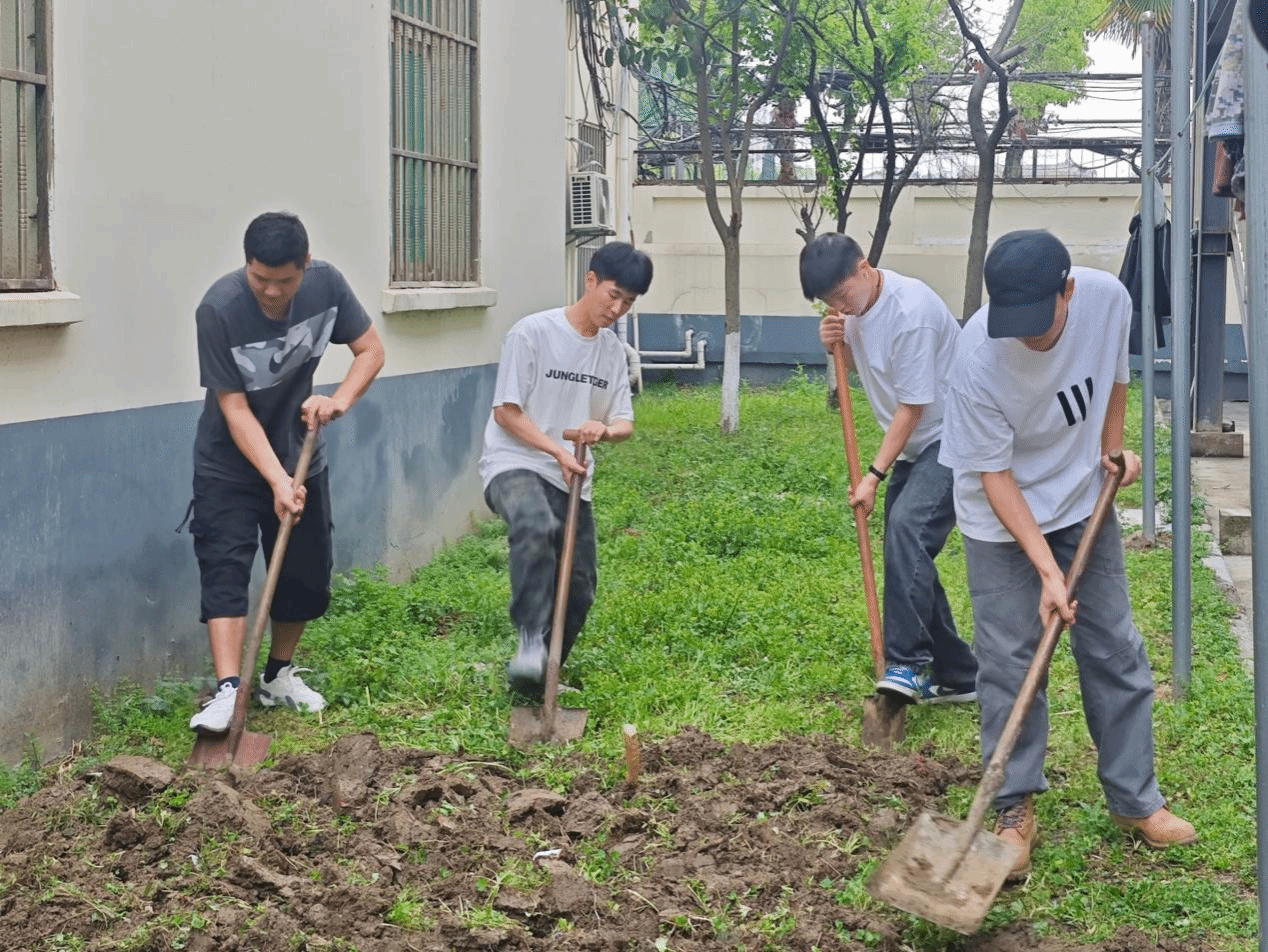 专题学习后,辅导员带领同学们以“社区思政小院”——"劳动小院"为载体开展实践教育活动。师生共同规划、翻整土地,在汗水中锤炼劳动技能。同学们克服困难、团结协作,既提升了实践能力,又培养了责任意识。通过劳动实践,同学们深刻体会到劳动价值,用实际行动展现了新时代青年担当奉献的精神风貌。