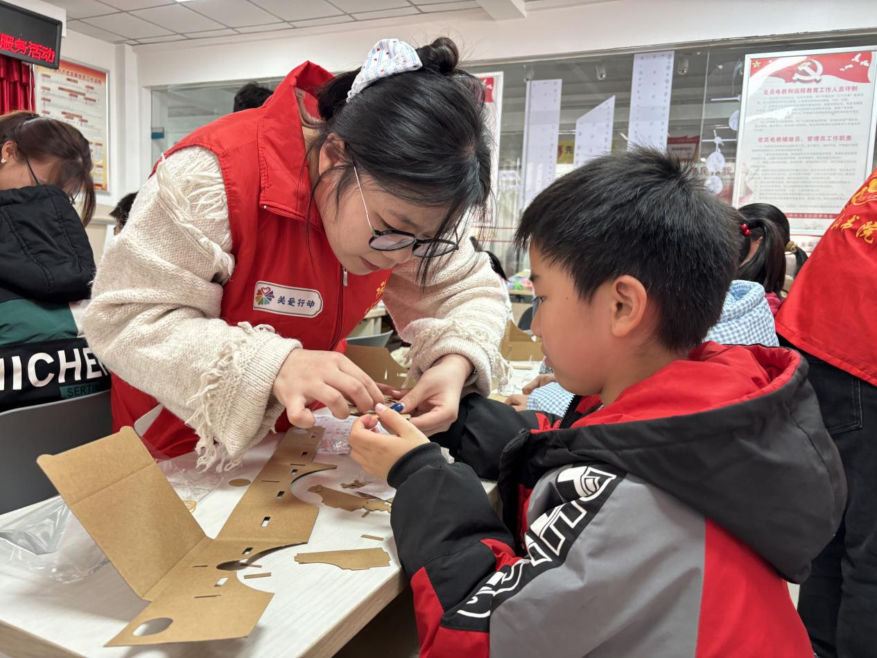 VR眼镜制作现场成为科技科普亮点。青年志愿者先通过动画演示光学原理与 VR 技术在管道巡检中的应用,解答“镜片为何呈现立体画面”等疑问。随后指导孩子们亲手打造专属 “科技装备”。戴上眼镜后,孩子们沉浸式“走进”西气东输工程,亲眼目睹测量放线、管道焊接等关键环节,感受科技守护能源安全的神奇。