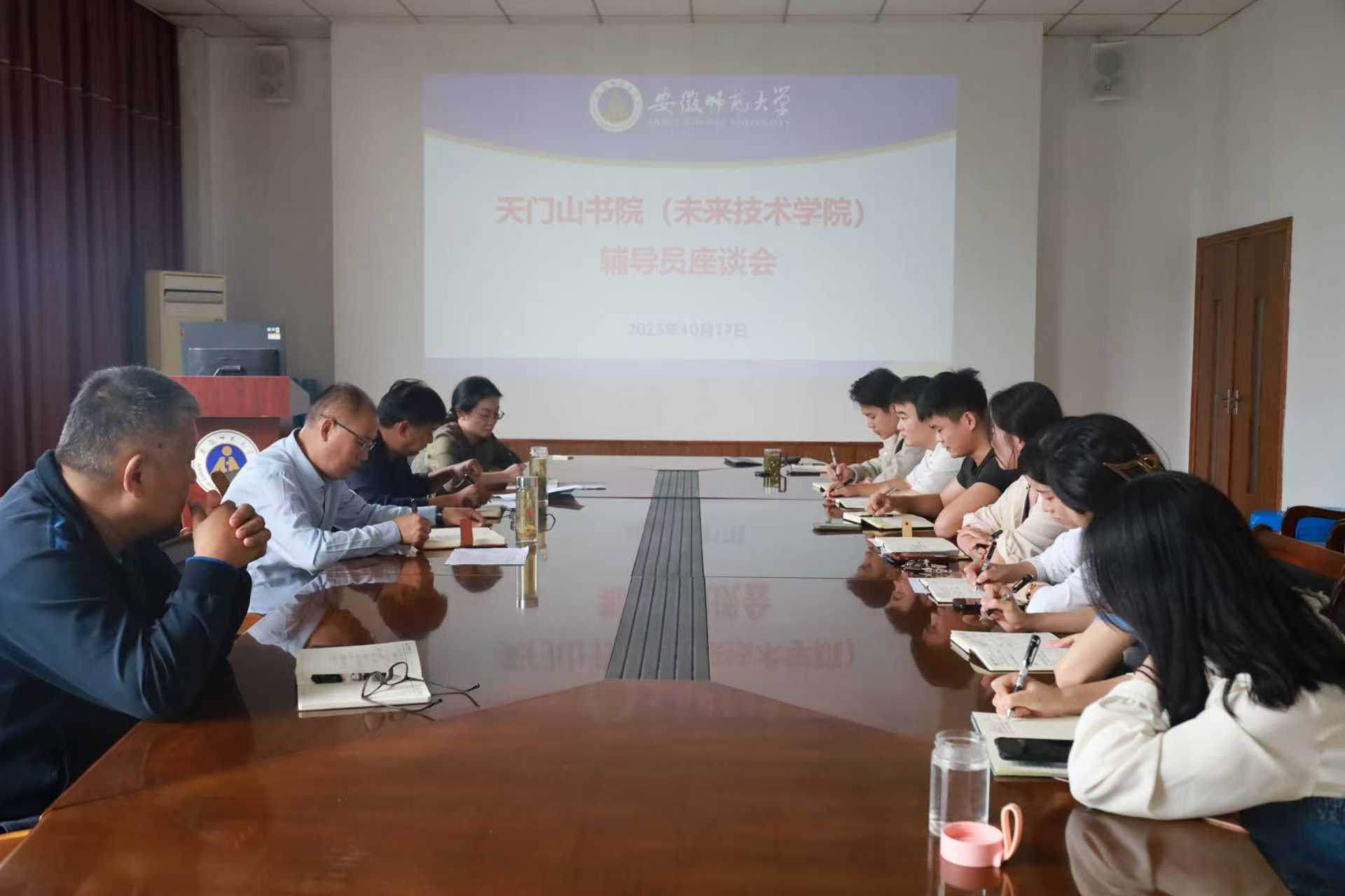 2025年10月17日,天门山书院(未来技术学院)在综合楼第一会议室召开辅导员座谈会。书院党委书记罗振、院长商永嘉出席座谈会,座谈会由书院党委副书记汪倩倩主持。