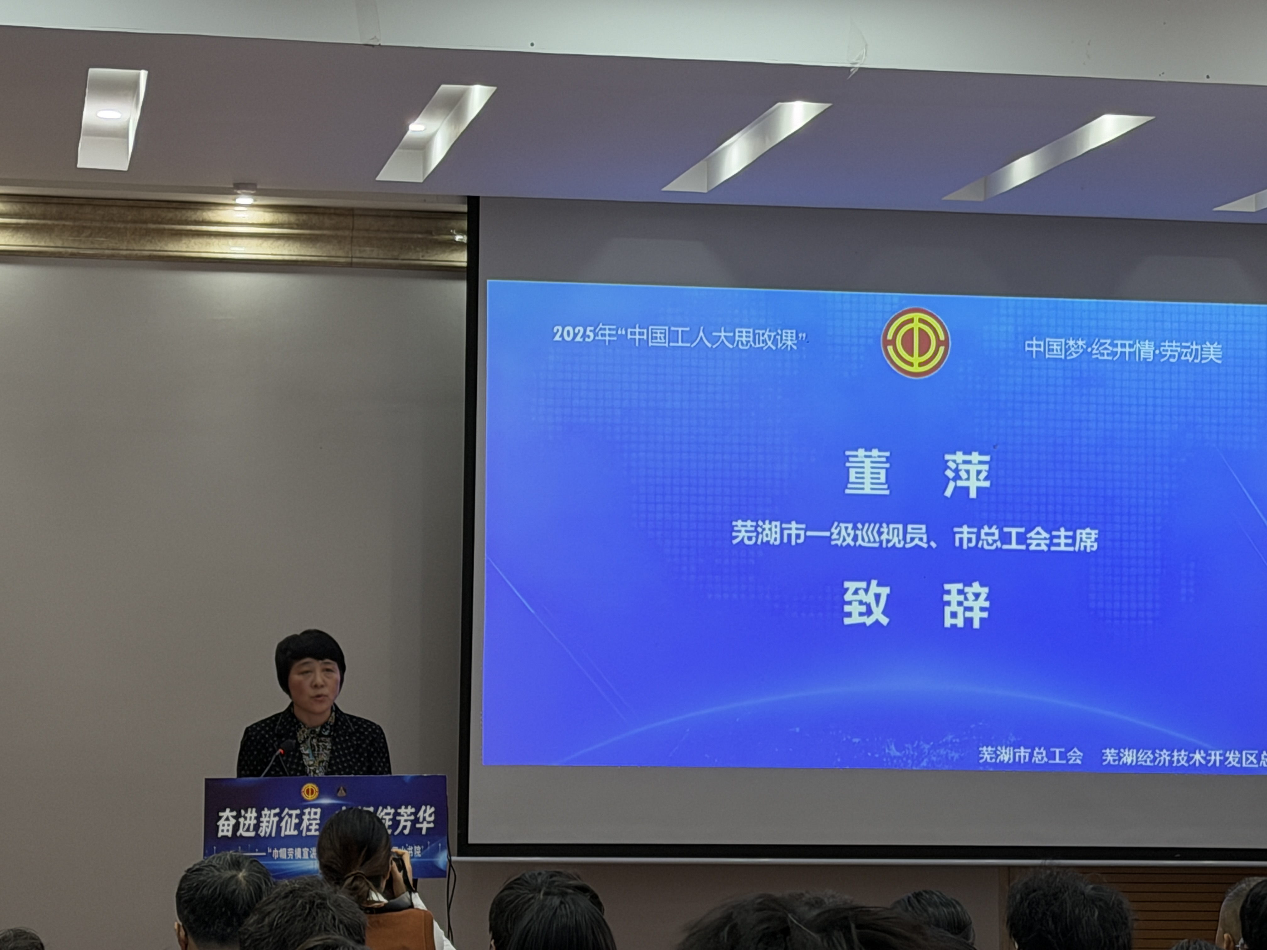 为深入学习贯彻习近平总书记关于劳模精神、劳动精神、工匠精神的重要论述,引导青年学子树立正确职业价值观,10月29日下午,由芜湖市总工会与经开区总工会共同主办的“中国工人大思政课”——“巾帼劳模工匠宣讲”活动在安徽师范大学天门山校区图书馆报告厅举行。校党委副书记曾黎明主持会议并讲话。