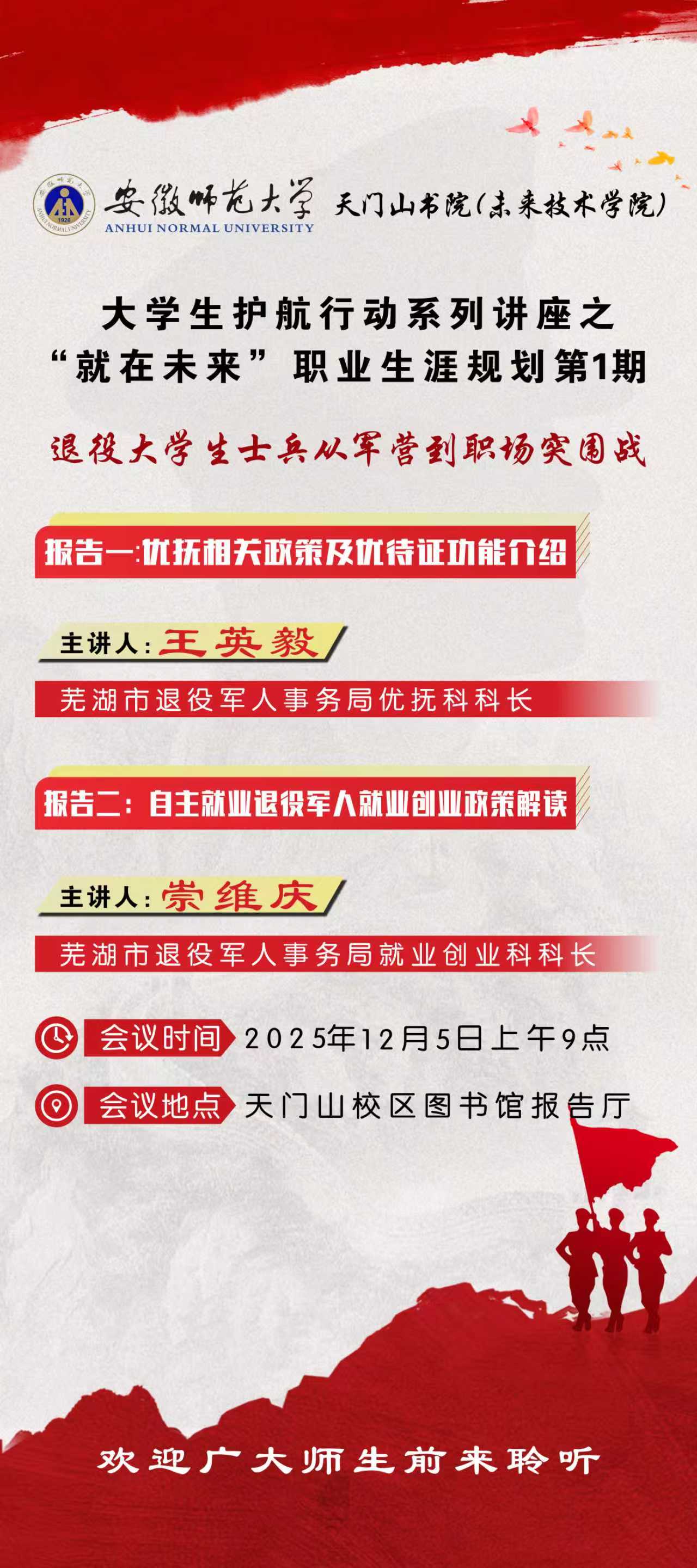 【大学生护航行动系列讲座】“就在未来”职业生涯规划第1期:退役大学生士兵从军营到职场突围战