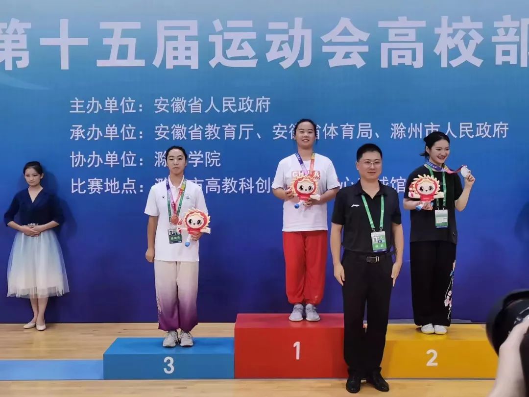 在安徽省第十五届运动会高校部武术比赛中,我院2021级工商管理类一班李可可同学获得了高校组丙组南拳冠军、ACCA卓越会计班丁妙祺获得了高校组甲组南拳冠军。两位同学斩获两枚省运会金牌。
