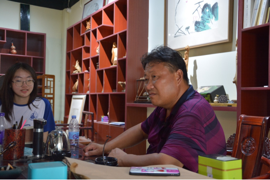 “刀为笔心有画 方寸之间剪乾坤。”6月28日,团队拜访了芜湖市剪纸协会的朱峰老师。出生于1973年的朱峰,来自安徽阜阳,如今在芜湖开着一家属于自己的剪纸工作室。工作室里所摆放的剪纸作品,从人物到动物,从山水到景观,件件都流露出这个北方汉子在艺术上细腻的一面。面对队员们的到访,朱峰老师与队员们交流了在剪纸这一门手工艺活动上的深刻感悟与领会。