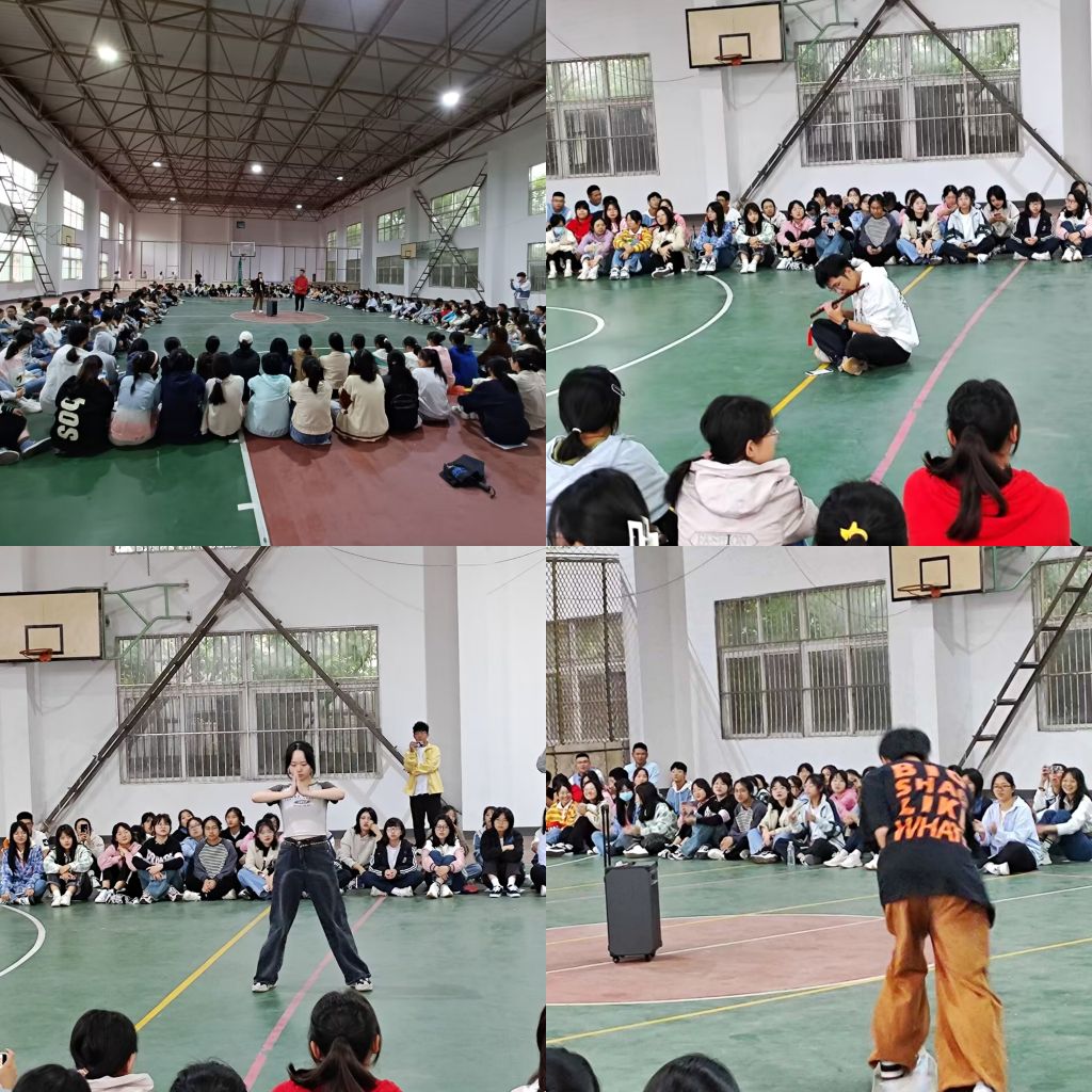 活动伊始是联欢表演环节,四个班级全体同学有序就坐于体育馆内。表演同学踊跃展示风采,唱歌、跳舞、乐器演奏、滑板等精彩节目轮番上演,观演同学纷纷加油打气,掌声、欢呼声不绝于耳。整个氛围轻松愉悦、笑声不断。