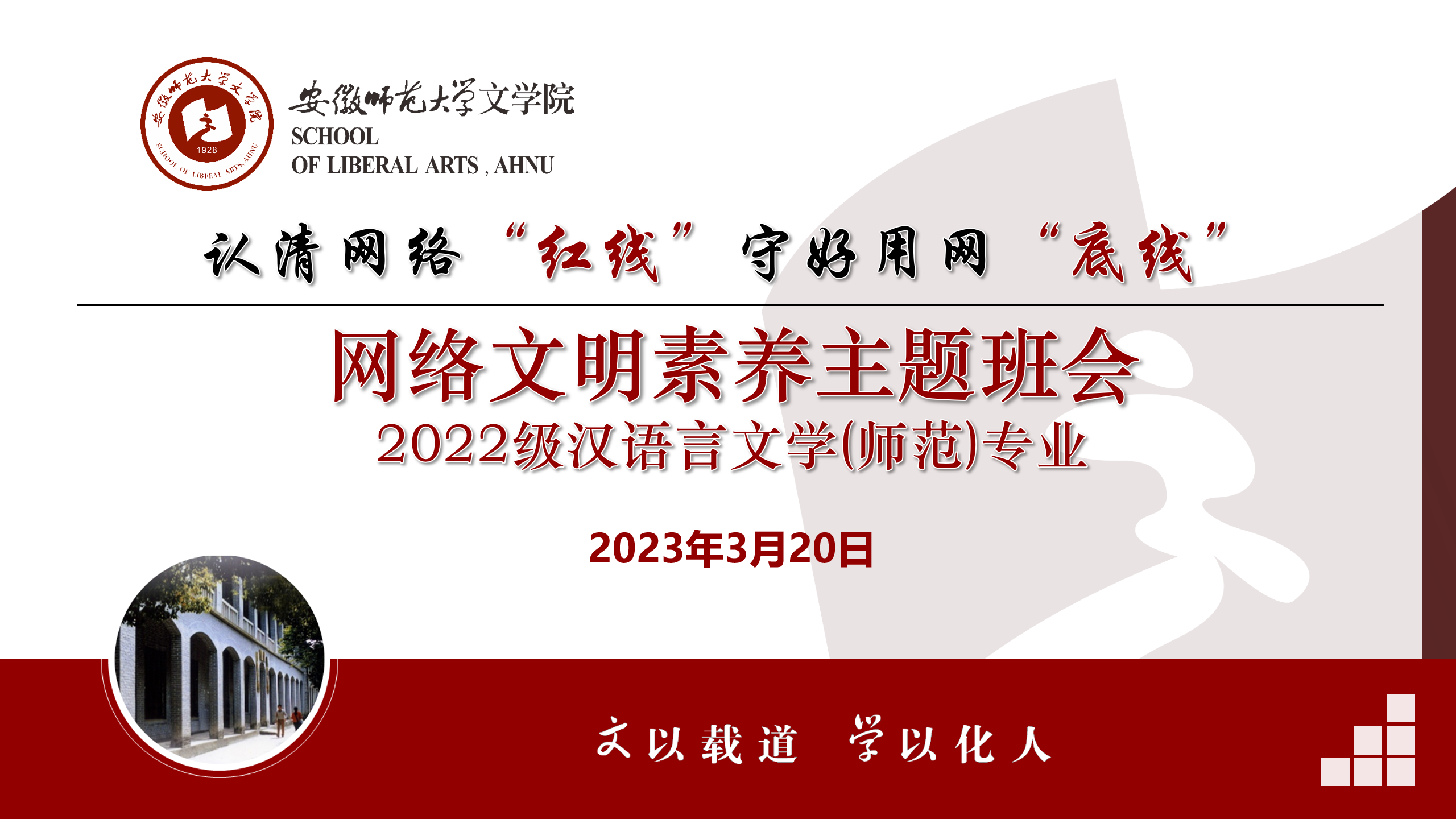 为进一步加强大学生网络道德素养和文明素养,22级汉语言文学专业于3月20日在天门山校区北教学楼召开网络文明素养教育主题班会。辅导员冯文君主持召开。