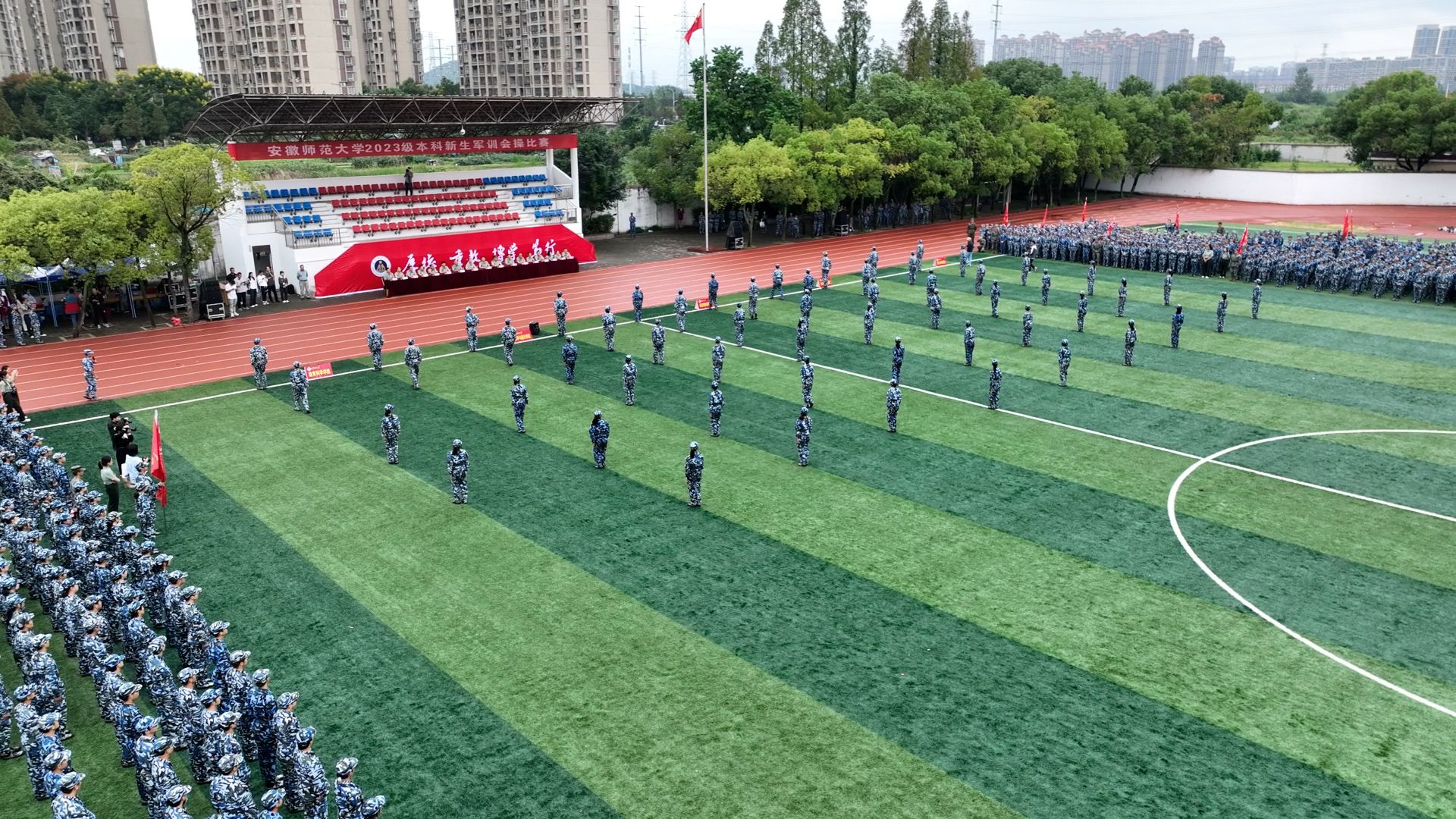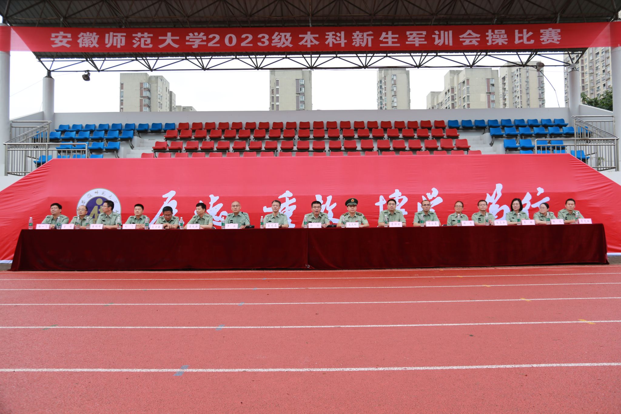 风吹秋半,叶动轻声,军歌嘹亮,9月22日下午,安徽师范大学天门山校区2023级本科新生军训会操比赛暨总结表彰大会在校区操场顺利举行。校党委常委、副校长任永,武警芜湖支队副参谋长宋天辉,教务处处长崔光磊,校团委书记廖仲明,学生处副处长项家春,财务处副处长王成新,校医院院长储倩,管委会办公室副主任左方敏,入驻校区学院副书记刘飞、张玉新、陈刚峰、朱琳、宫超、杜凤、杨一飞、芮先红,以及全体教官、助训教官、指导员和2023级新生出席大会。管委会办公室主任罗振主持大会。