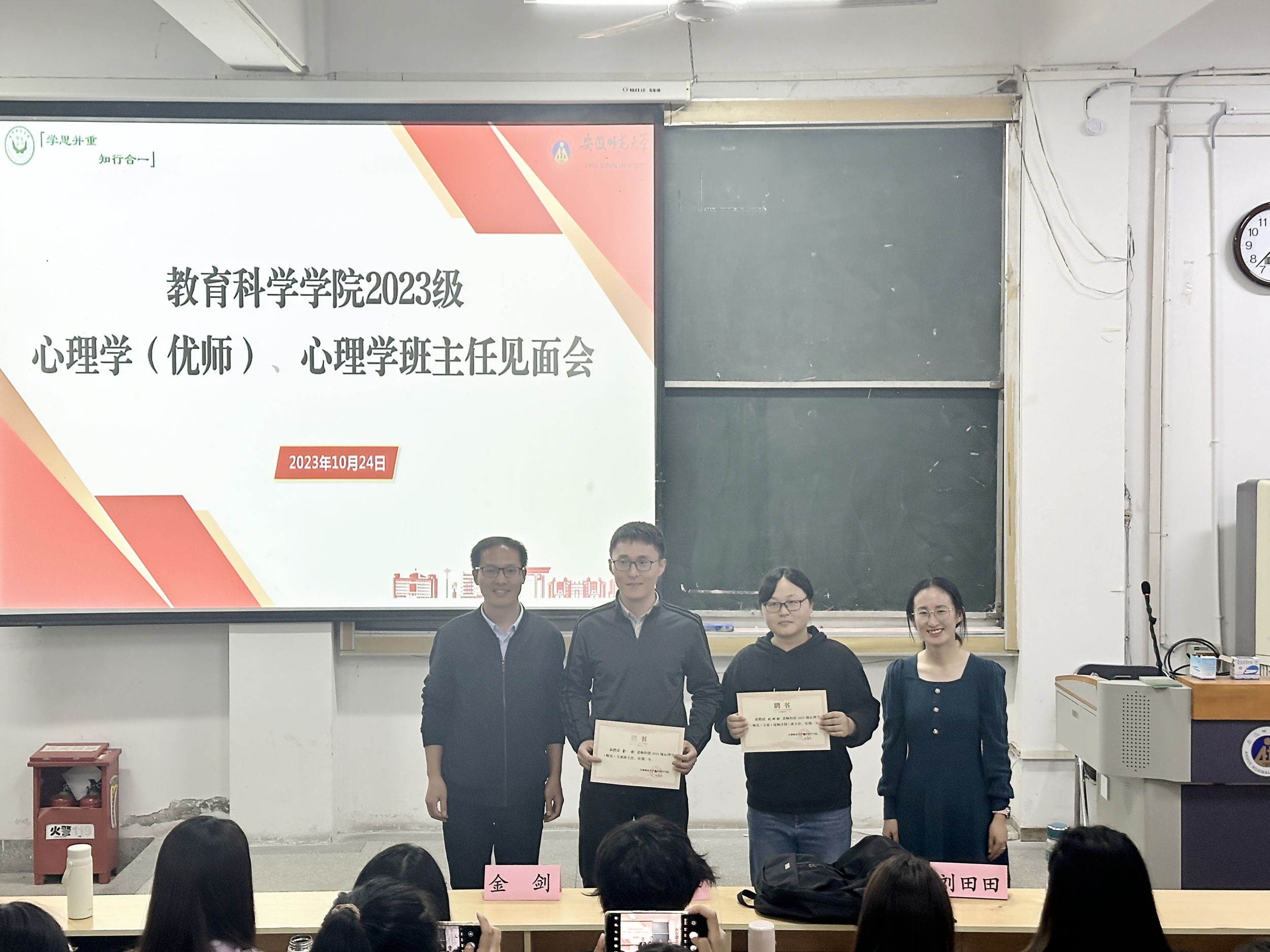 为增进学生专业归属感,强化班级学风建设,护航学生成长,学院于1024日晚在天门山校区召开2023级心理学(优师)、心理学班主任见面会,会议由专业负责人王礼军主持,新任班主任刘田田、金剑,辅导员金凤仙及全体相关专业同学参加。