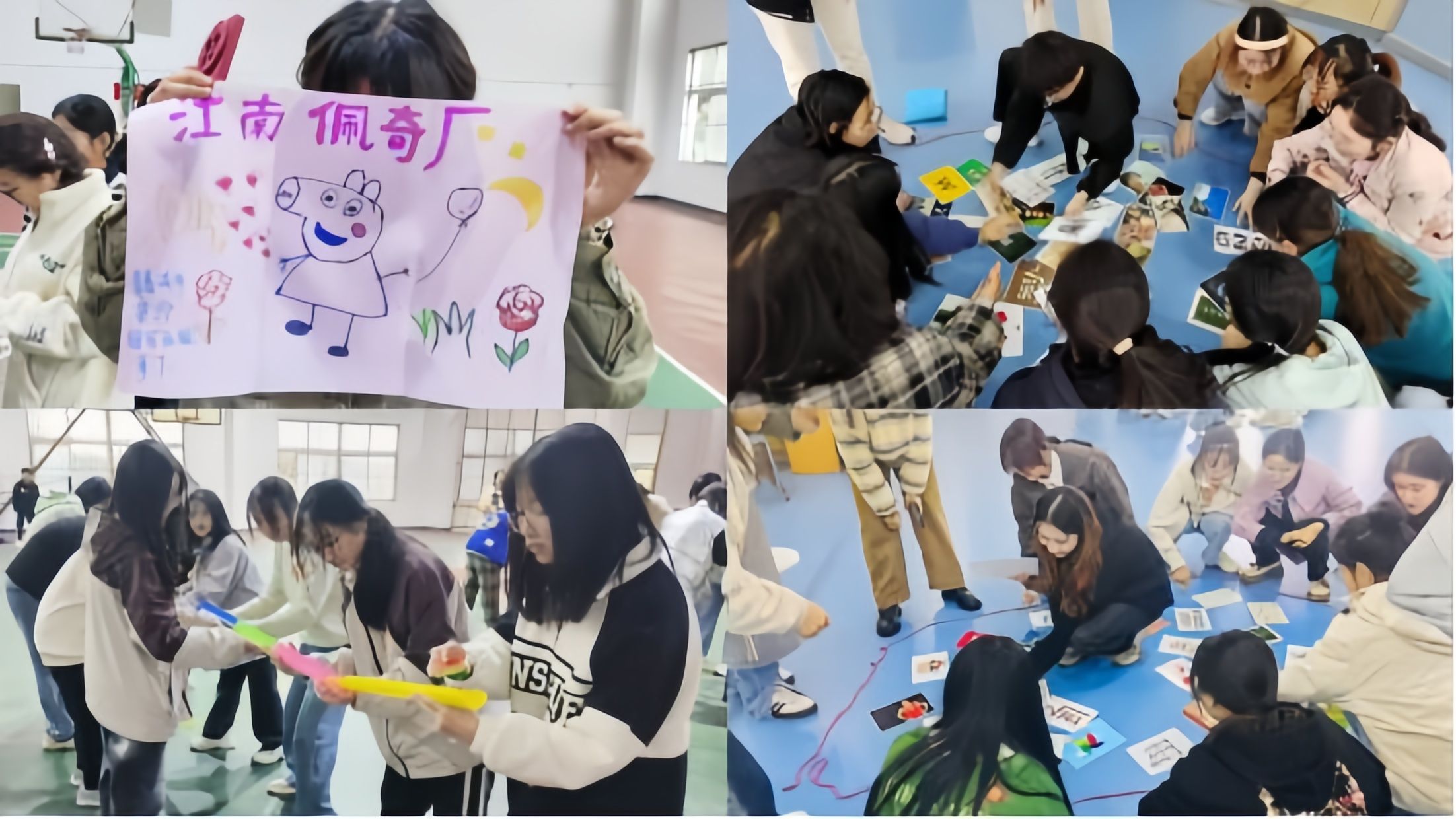 游戏既需个人的参与,也要团队的合作。许多的奇思妙想,是每个人灵感的碰撞。在团队建设中,同学们为设计自己小组的组旗出谋划策,各司其职,展开激烈的讨论,最终完成一幅幅寓意丰富、独一无二的队旗。展示台上绽放着一组组同学青春灿烂的笑脸,流动着每组同学趣味盎然的口号。