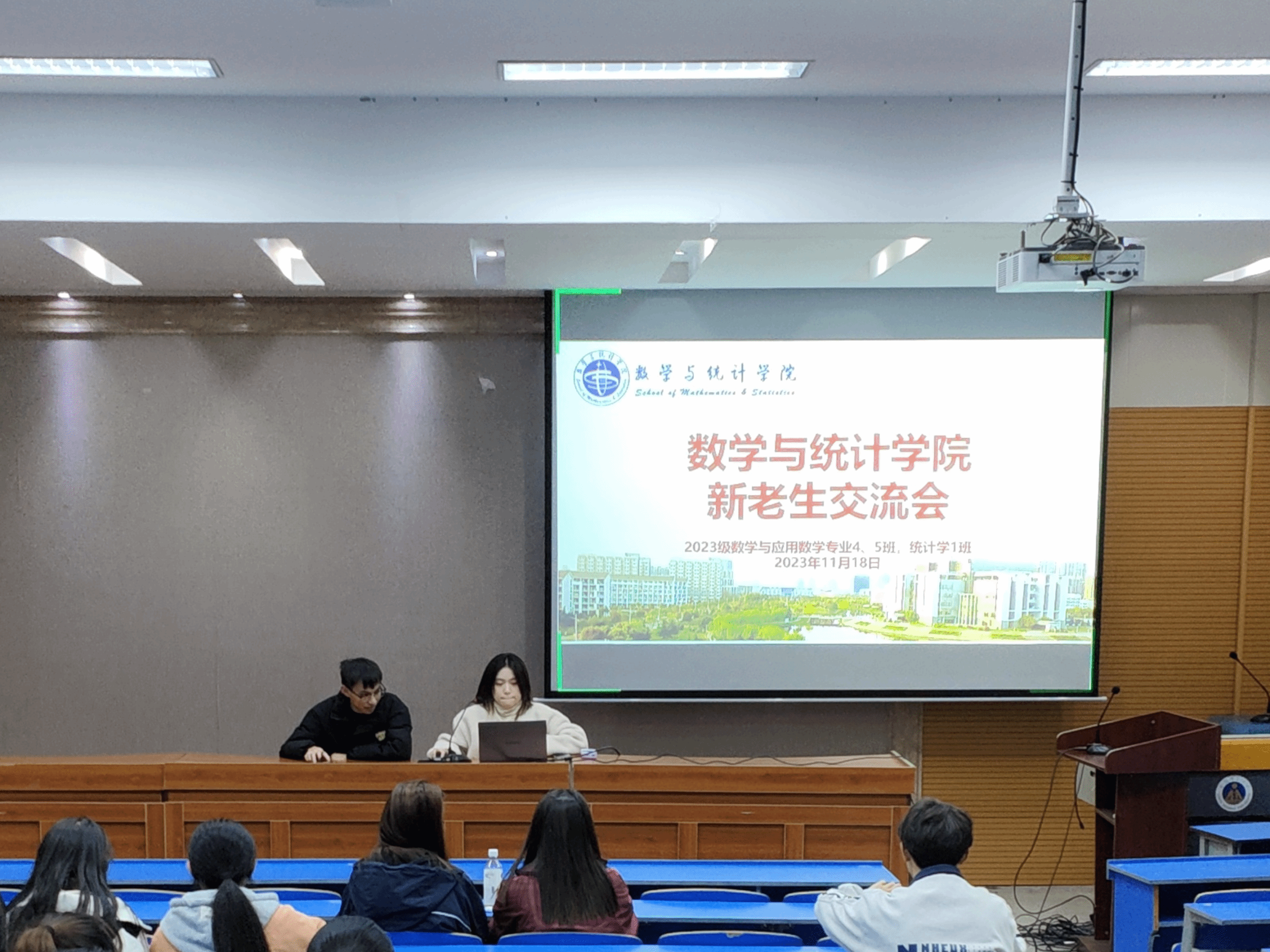 为进一步明确学习目标与方法,2023级数学与统计学院统计学专业与数学与应用数学(师范)专业4、5班于11月18日在天门山校区图书馆报告厅开展新老生交流会。会议由统计学1班刘艺洁主持,数学与应用数学4、5班与统计学1班全体同学参会。