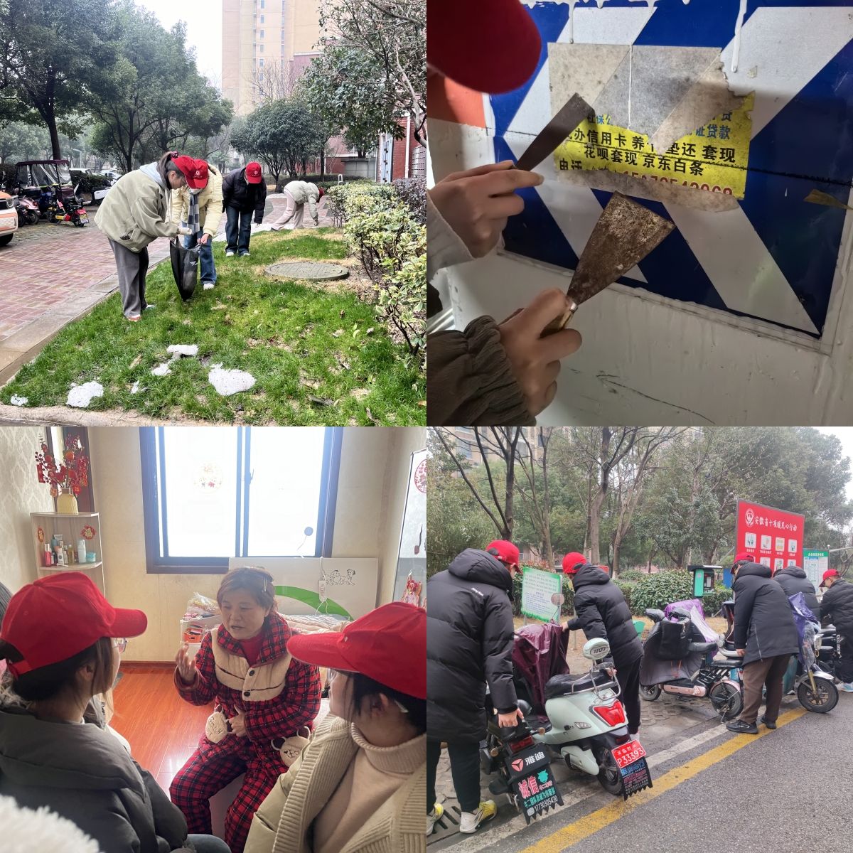 在大圣社区“连心桥”党员志愿者的带领下,志愿者们分工有序,在小区楼道里,同学们拿着抹布、手套、垃圾袋、铁铲等工具对藏污纳垢的角落、张贴的小广告一一仔细清理,在地下车库,同学们用扫帚和簸箕清扫地面垃圾与灰尘,将非机动车有序摆放,在小区的另一边,同学们拜访抗美援朝退伍军人、独居老人、低保家庭,并帮助他们整理房屋、打扫卫生。
