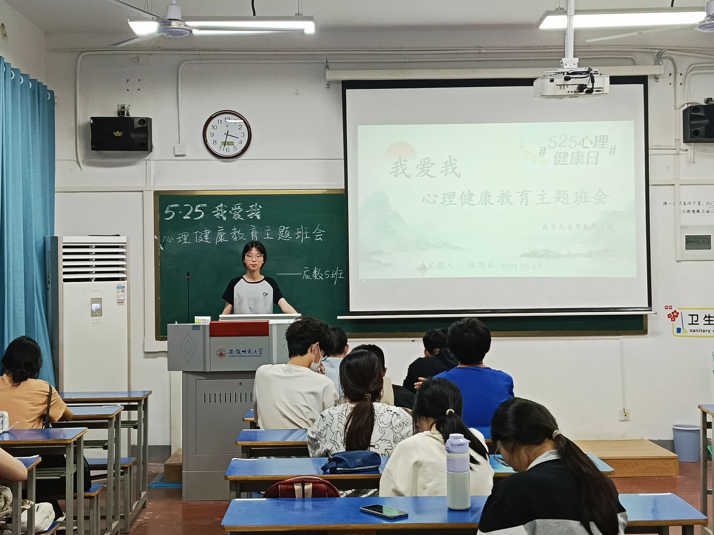 主题班会,主动爱人爱已。为了让同学们认识到心理健康的重要性,学会自我接纳,自我成长,自我实现,2023级数学与应用数学(师范)专业5班于5月13日召开“我爱我”心理健康教育主题班会,心理委员张凯莉详细说明了珍爱生命、关注健康的具体内容,列举了人际关系处理及情感表达的技巧,鼓励学生们自信自强,积极面对挑战。会议结束后,同学们纷纷表示学会了很多认识自我、接纳自我、爱惜自我的方法,在以后的生活中,将运用这些方法调整心态,克服困难,保护心理健康。