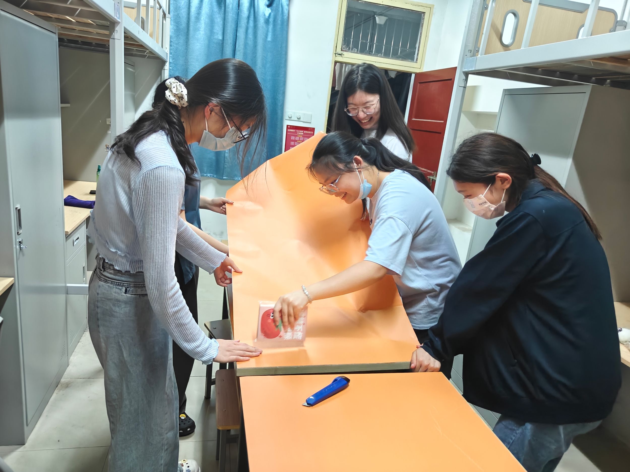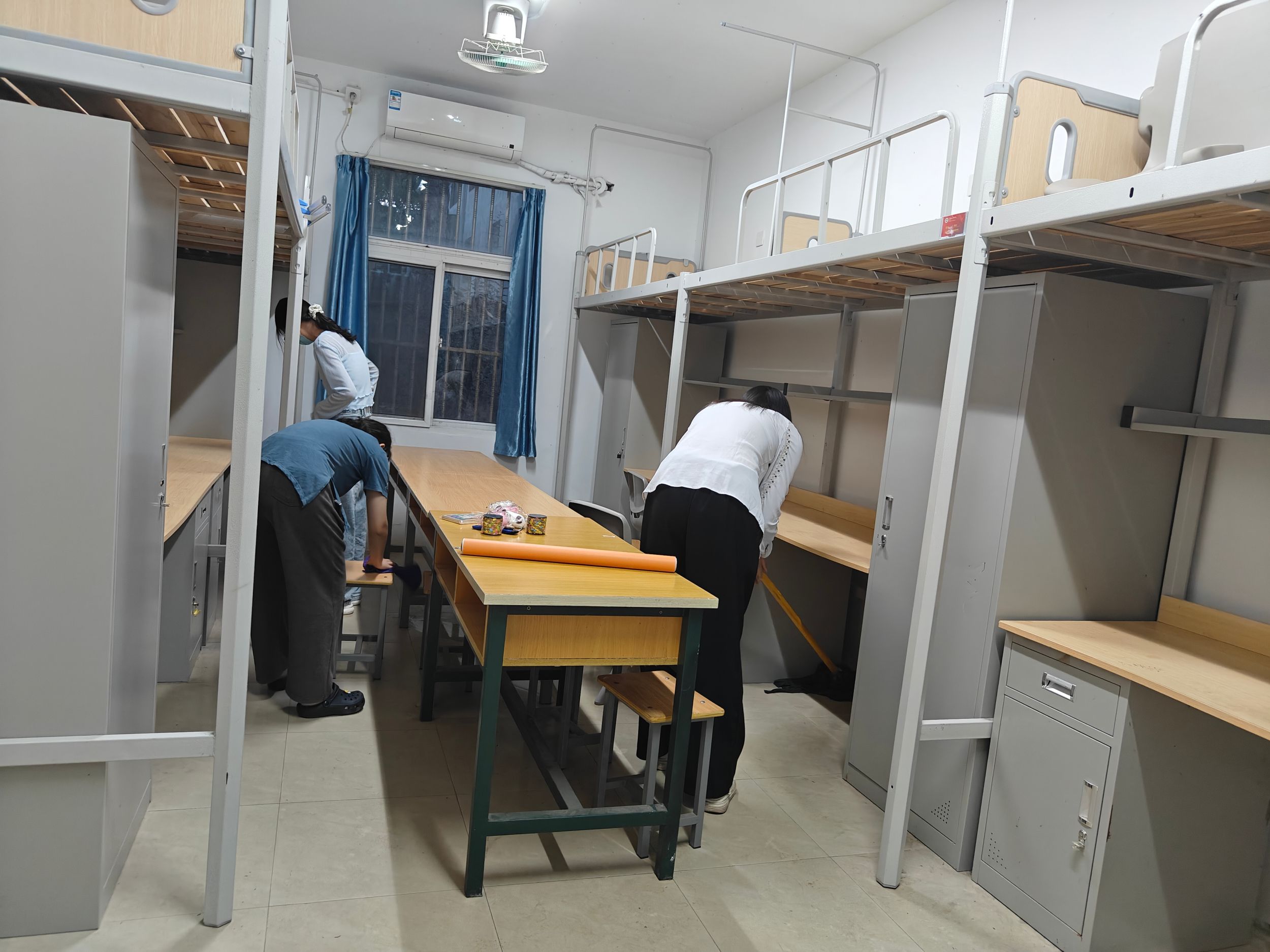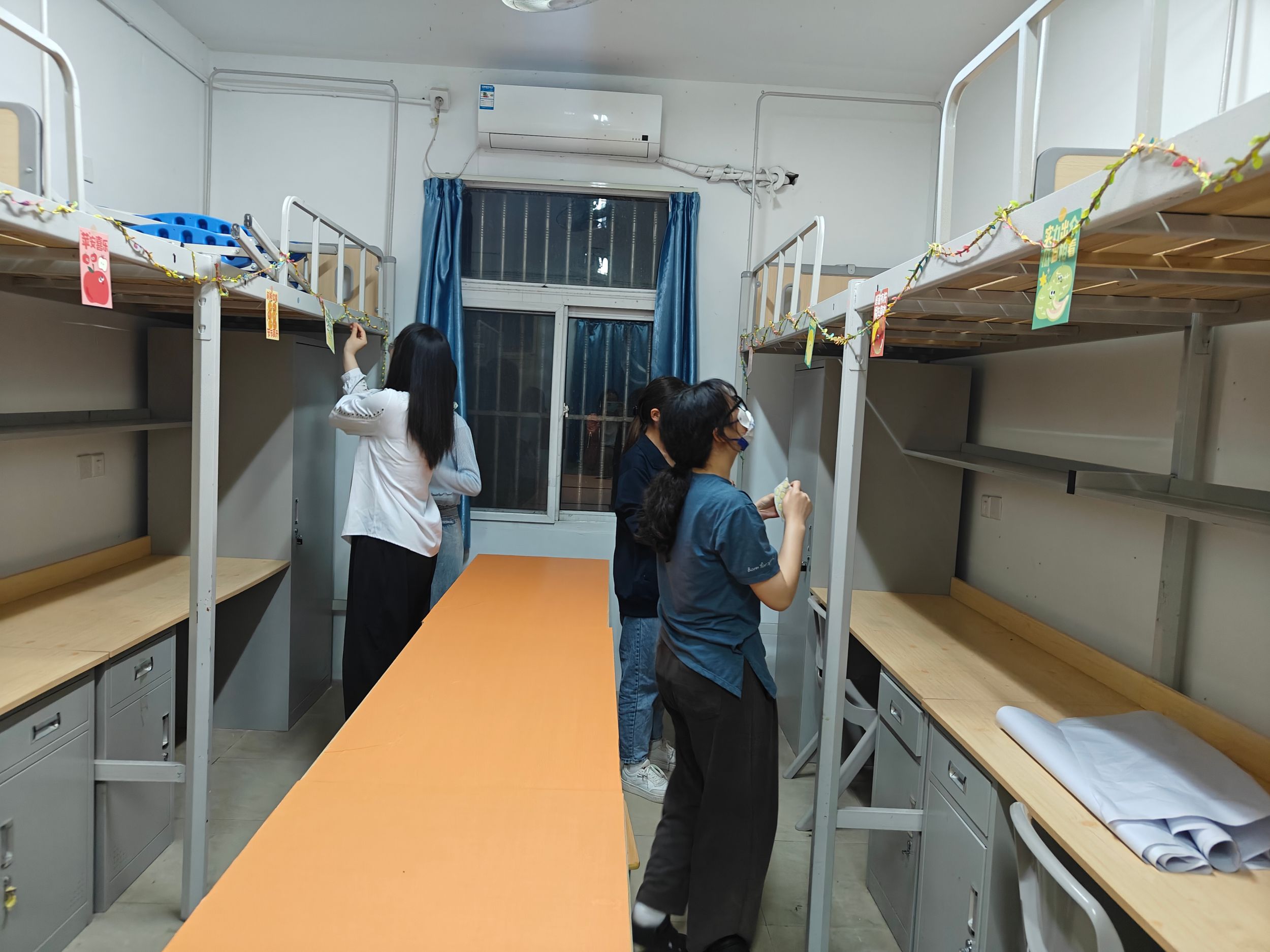 同学们对房间进行了蚊虫清理和简易消杀工作,认真清扫了房间每个角落,并对房间进行了美化布置和装饰。