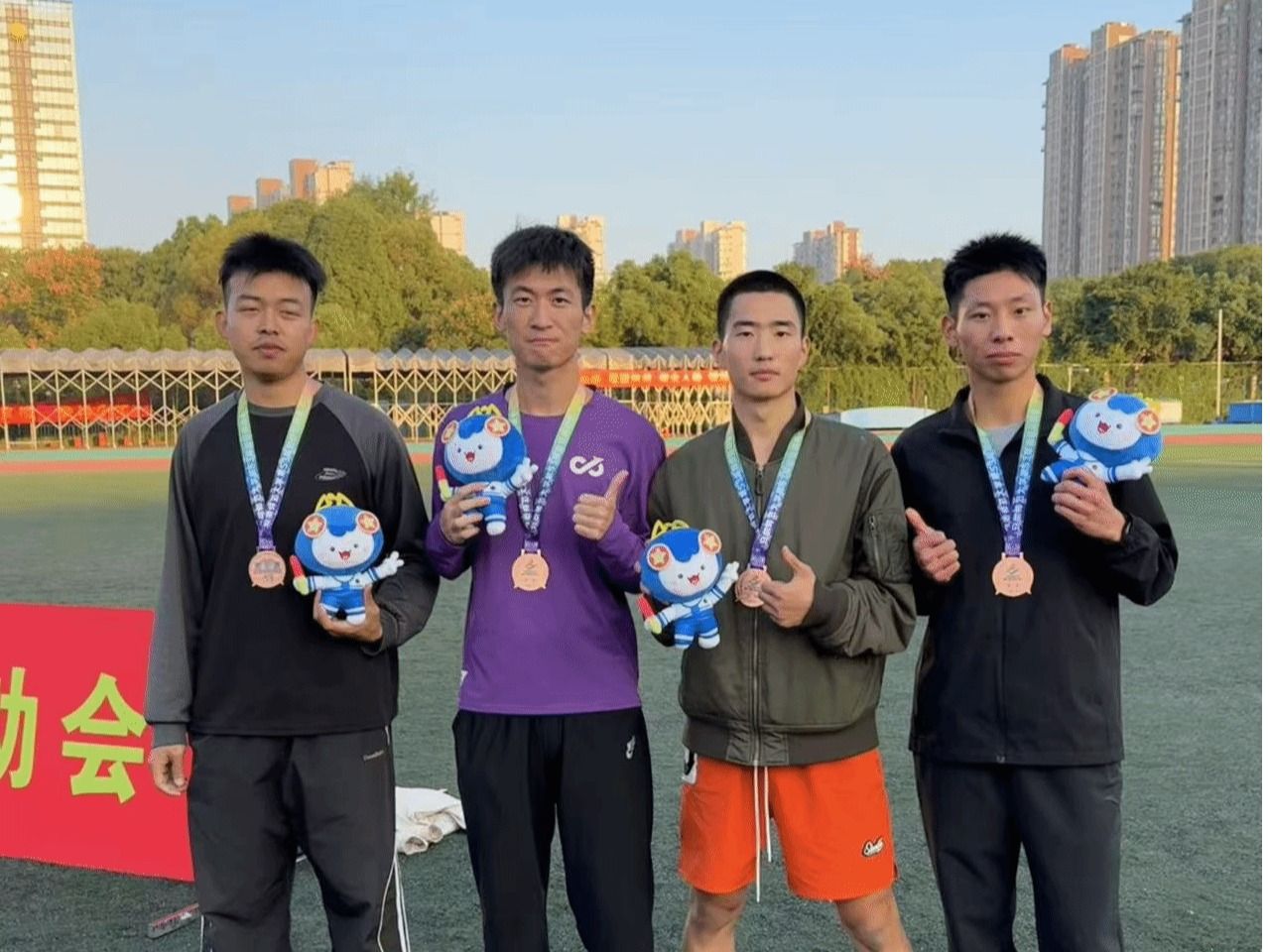 宋远长、苏从新、孙强强、甄俊在男子甲组4*400m项目中获得铜牌