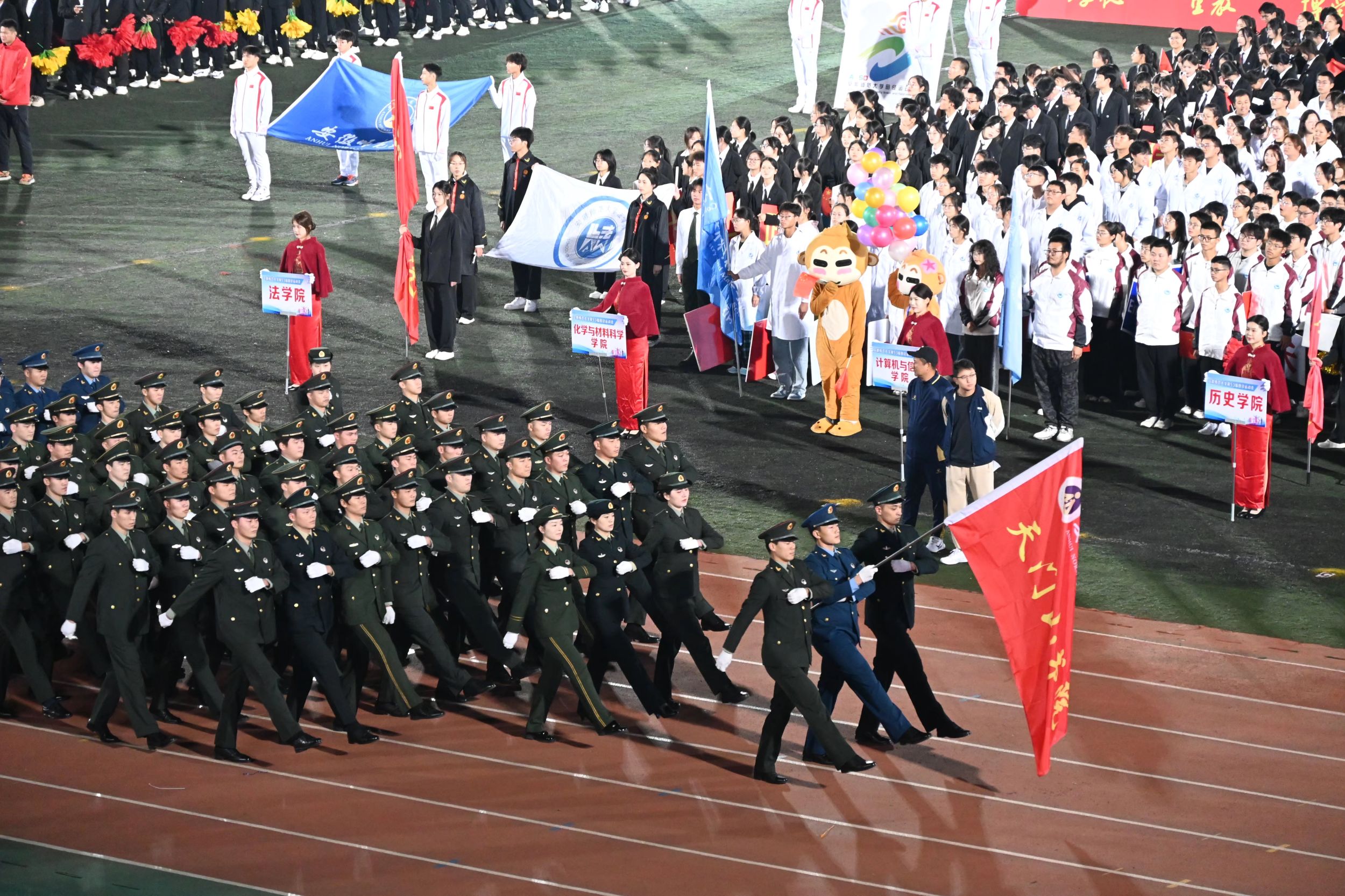 逐梦青春,扬帆起航。本届校运会开幕式,天门山书院方阵队由12个专业,75名空军、陆军、海军等退役士兵组成。吾辈少年,风华正茂,骏驰风飙,携笔从戎。他们步伐有力、精神抖擞、口号嘹亮,用飒爽英姿庆贺中华人民共和国成立75周年。