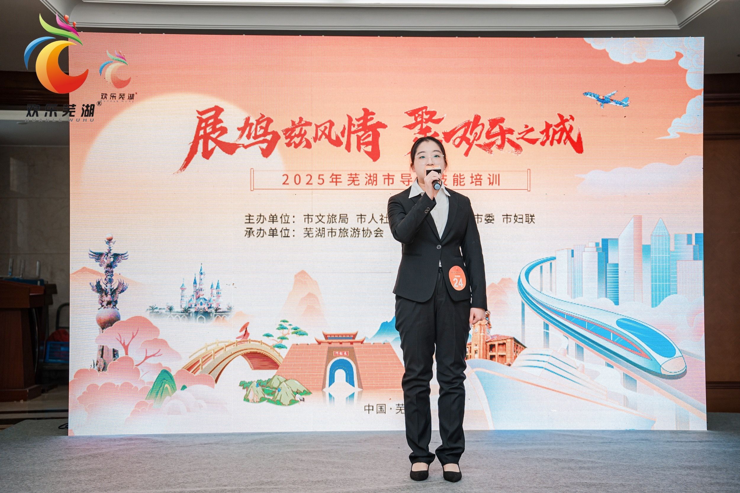 本次大赛由芜湖市文旅局、市人社局、市总工会、团市委、市妇联主办,芜湖市旅游协会承办,旨在挖掘和培养更多优秀的导游人才,进一步提升芜湖市文旅行业的服务质量和品牌形象。比赛分三个阶段进行,第一阶段为晋级赛,包括直播带货、个人展示和文旅资源推介三个环节,全面考验选手的综合素质和专业技能;第二阶段为接力对抗淘汰赛,选手们现场抽选旅游文化元素进行接力对抗讲解,需展现极高的应变能力;第三阶段为总决赛,选手们现场抽选旅游文案元素和团型,将两者有机结合进行现场导游词创作和室内模拟带团讲解,充分展示创意思维和实际操作能力。