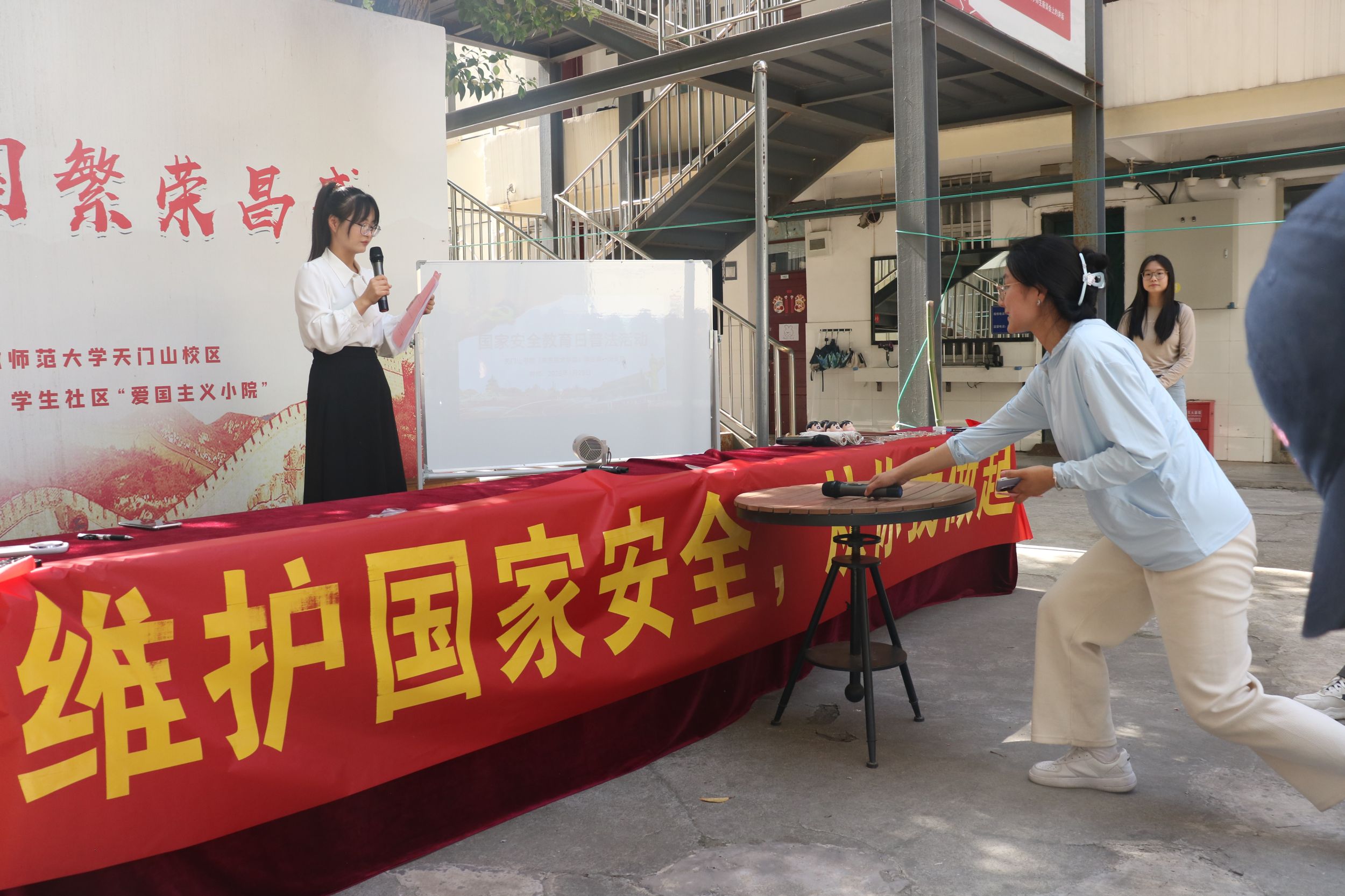 2025年4月28日,天门山书院(未来技术学院)在学生3号楼“爱国主义小院”举办“国家安全教育日”普法知识竞答活动。此次活动旨在提高广大学生的国家安全意识和法律知识,增强社会的法治观念。