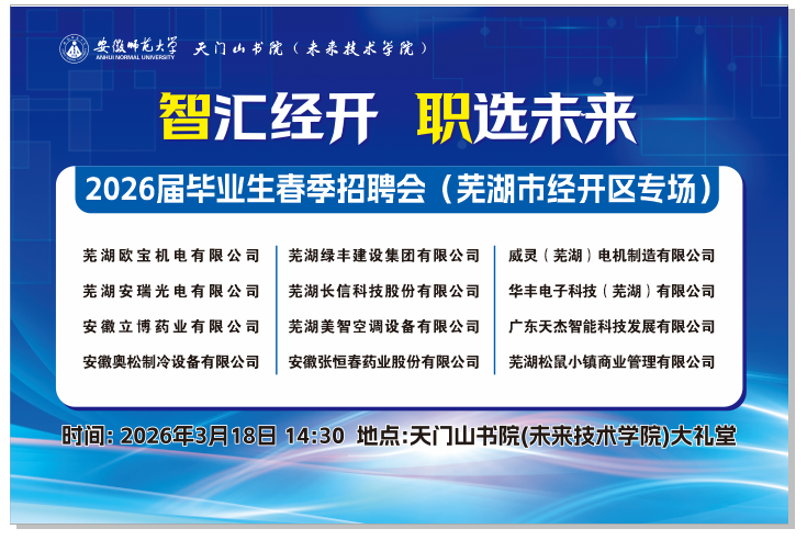 智汇经开 职选未来——天门山书院(未来技术学院)2026届毕业生春季招聘会(芜湖市经开区专场)
